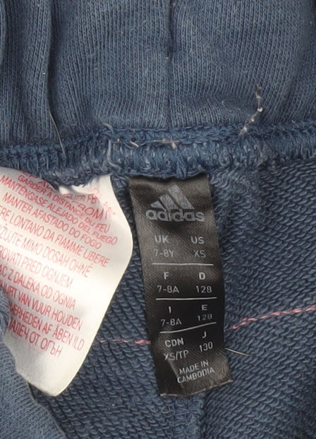 Adidas Boys Blue Jogger Trousers 7-8 Years Elastic Waist Activewear