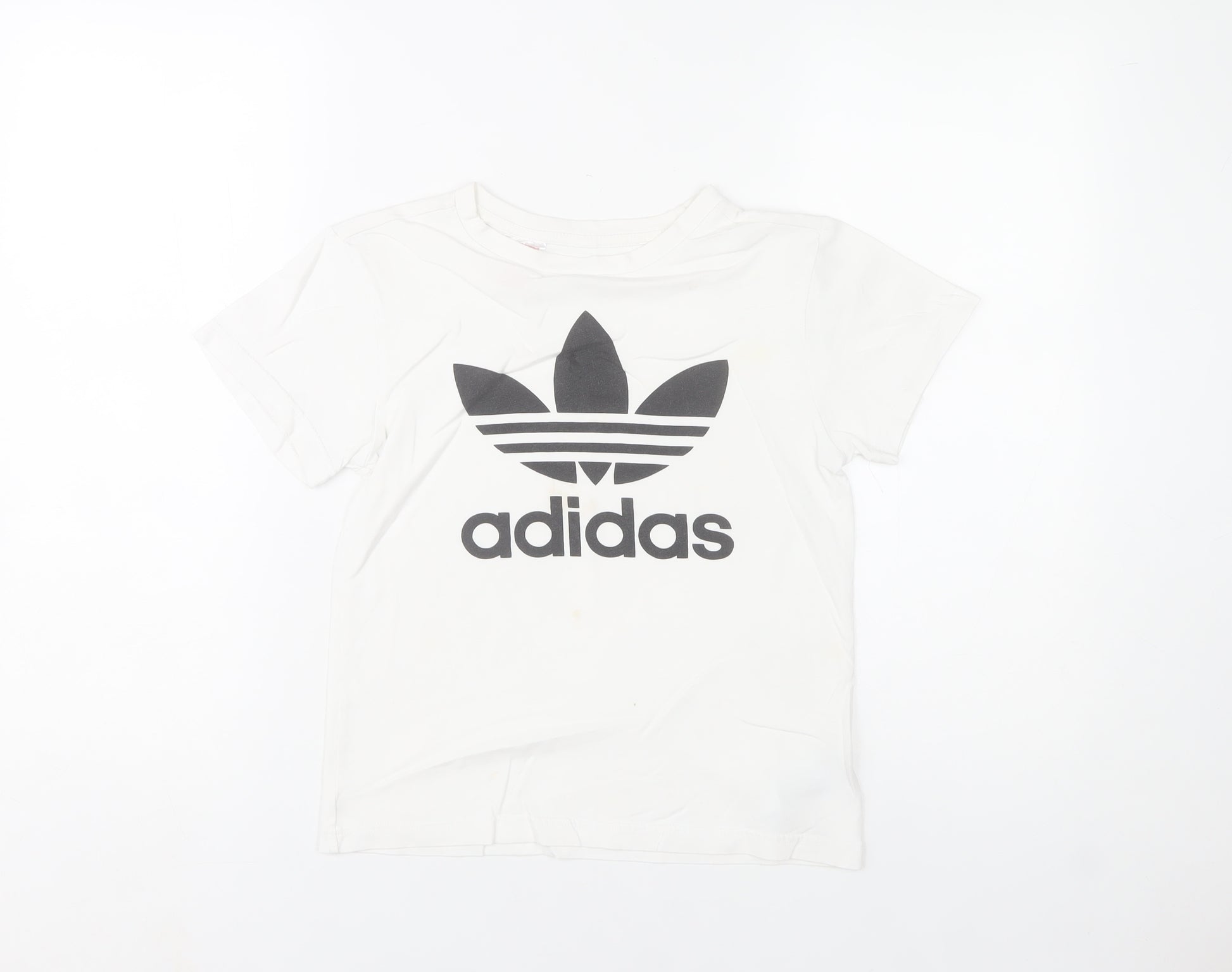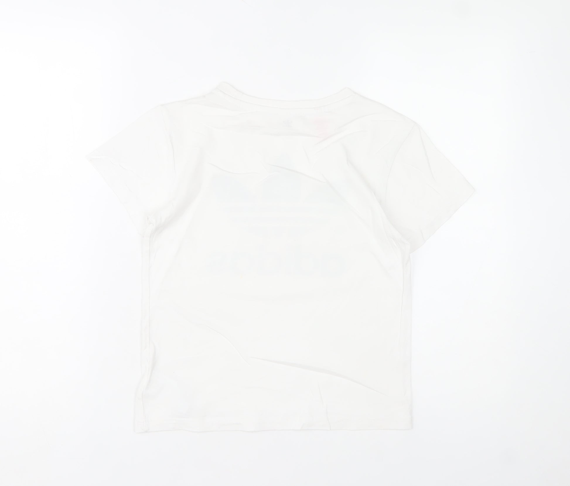 Adidas Girls White 10-11 Years Logo Cotton Short Sleeve T-Shirt
