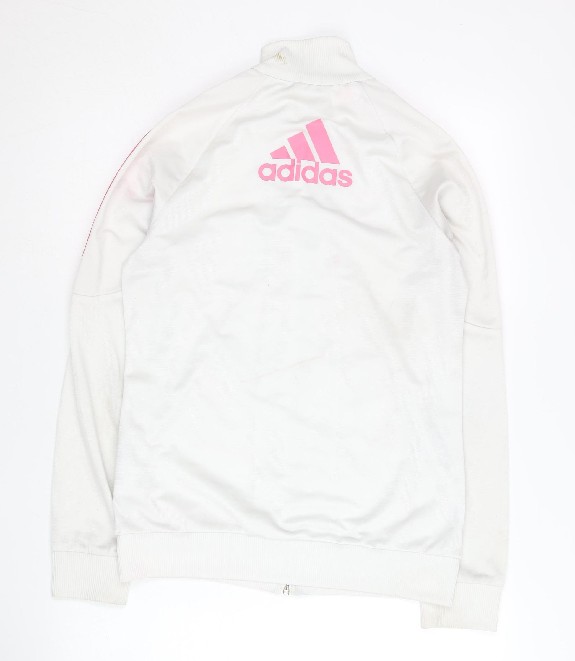 Explore athletic excellence with the Adidas Girls White Track Jacket, designed for young athletes who strive for both comfort and style. Crafted from 100% polyester, this mid-length jacket offers a durable, woven fabric that's perfect for activewear occasions and training sessions. The long sleeves and regular fit provide a relaxed yet secure feel, making it ideal for sports activities, gym sessions, and casual outings. Featuring a full zip closure, this track jacket ensures ease of wear and adaptability to changing weather conditions. The integrated hood not only adds an extra layer of warmth but also enhances the sporty aesthetic. Store your essentials safely with conveniently placed pockets, ideal for keeping small items like keys or snacks within reach. The pristine white colour and classic Adidas design, characterized by subtle style, offer a versatile look that blends seamlessly with any outfit. Caring for this jacket is effortless, as it is machine washable, ensuring that it maintains its fresh appeal wash after wash. In excellent condition, without sales tags, this jacket represents a high-quality choice for those with an eye for practicality and chic sportswear fashion. Fuel your fitness journey and elevate your wardrobe with this essential piece from Adidas, perfectly tailored for all-season wear.