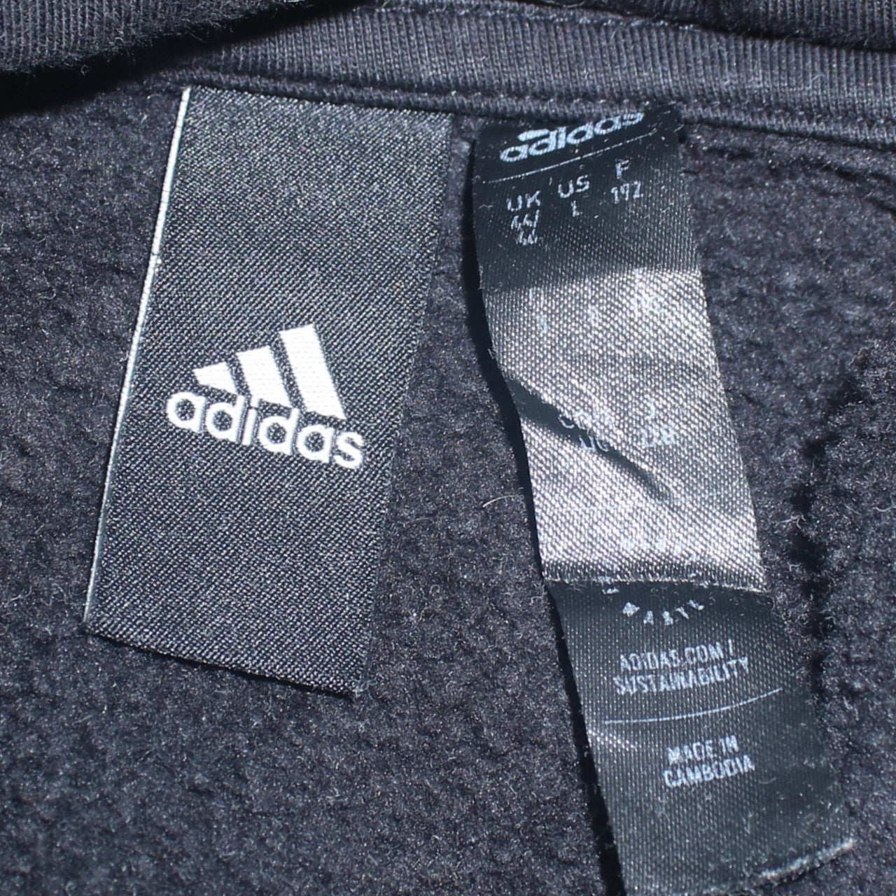 Adidas Men Black L Pullover Hoodie Logo Fleece Sweatshirt