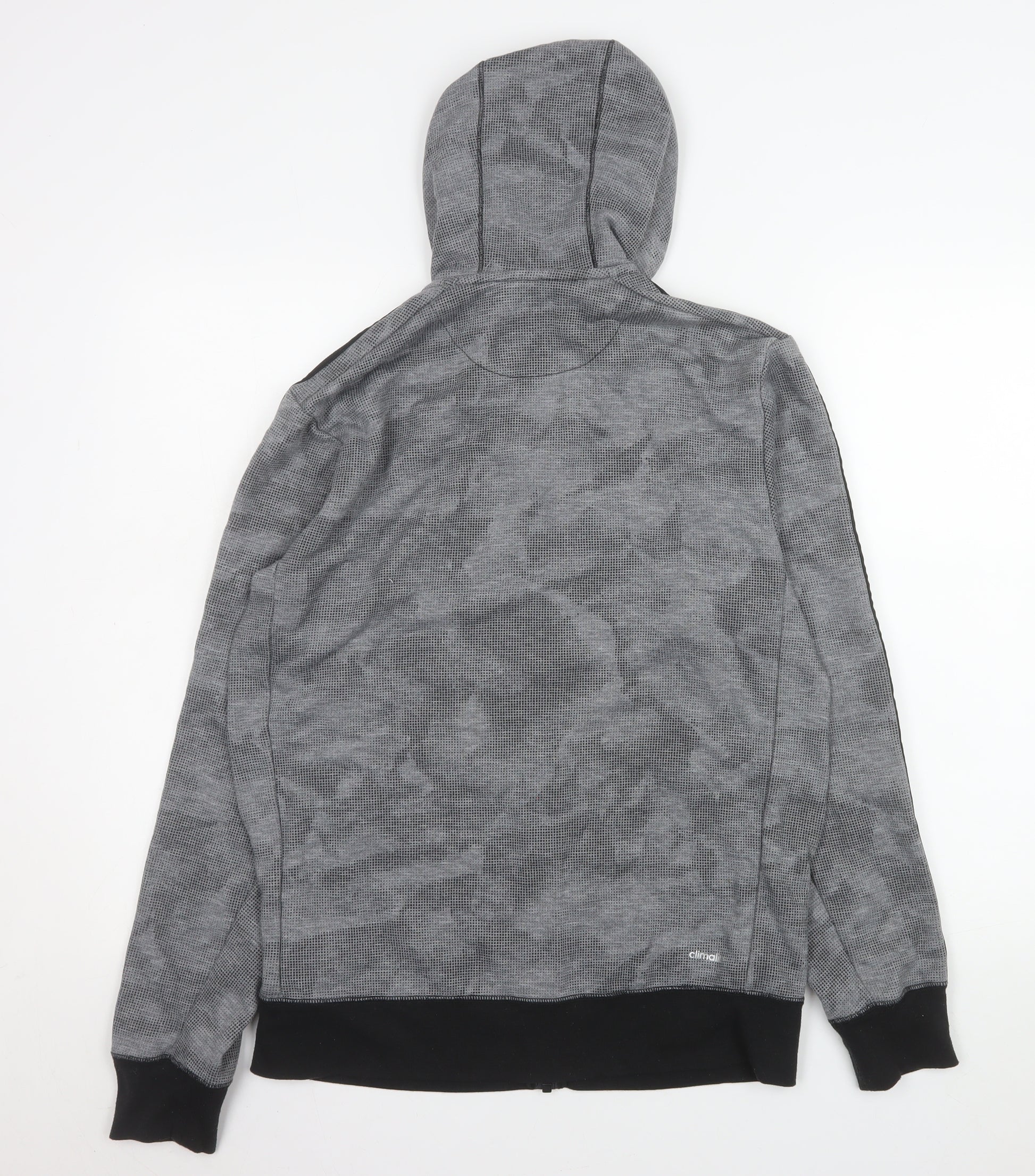 Stay comfortable and stylish with this Adidas Men’s Sport Essentials full zip hooded jacket in versatile grey. Designed with both comfort and performance in mind, it features a regular fit and iconic Adidas three-stripe detailing down the sleeves for an instantly recognisable look. Crafted from a high-quality blend of 75% polyester and 25% viscose, it provides excellent durability with a soft, flexible feel ideal for casual wear or athletic activity. The full zip fastening makes it convenient to adjust your warmth level, while the lined interior adds an extra layer of comfort. The hood offers extra protection for cooler days or rainy conditions, making it suitable for use during autumn, spring, and winter. Two handy front pockets ensure your essentials are kept close and secure. This grey jacket displays a subtle camouflage-inspired pattern that adds a modern edge to a classic sporty design. Perfect for men who value functional style, this jacket easily pairs with joggers, jeans, or gym wear, fitting seamlessly into your everyday or active wardrobe. Whether you’re training at the gym, jogging outdoors, or relaxing after a workout, the Climalite technology helps to wick moisture, keeping you dry and comfortable throughout the day.In excellent condition with minimal signs of wear, this jacket promises both quality and comfort from one of the most trusted sportswear brands in the world. Machine washable for effortless care, this Adidas Sport Essentials hooded jacket is a dependable layer you’ll reach for season after season. A great addition for anyone looking to combine practicality with the signature Adidas aesthetic.