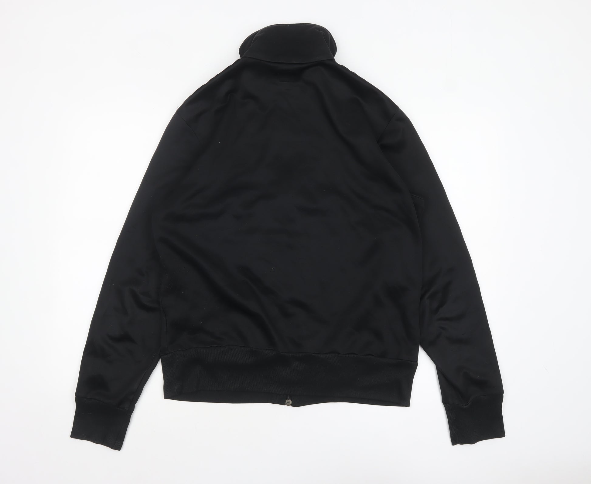 This Adidas Men’s Black Basic Track Jacket in size Medium is a stylish choice that combines sporty design with everyday comfort. Crafted from 100% polyester, it ensures a soft and flexible feel while maintaining durability for long-lasting wear. The sleek black base is complemented by subtle gold Adidas branding on the chest and a distinctive star patch on the lower hem, giving the jacket a signature sporty touch. Featuring a full front zip closure and a stand-up collar, it offers a classic athletic silhouette that’s both versatile and practical. The ribbed cuffs and hem provide a snug, comfortable fit, ideal for layering over sportswear or casual outfits. Two zipped side pockets deliver convenient storage for essentials, while the soft lining enhances overall comfort. This jacket works perfectly for the gym, running, or as a casual layer during the spring and autumn seasons. Its design combines performance with fashion, making it a wardrobe staple for active men who value both style and functionality. Suitable for everyday wear, travel, or post-workout comfort, this Adidas track jacket reflects quality craftsmanship and iconic brand appeal. In excellent used condition with only light signs of wear, it remains a great value piece for any modern wardrobe, effortlessly pairing with joggers, jeans, or shorts for a laid-back, sporty look. Upgrade your outerwear collection with this timeless Adidas essential that embodies versatility, comfort, and classic design.