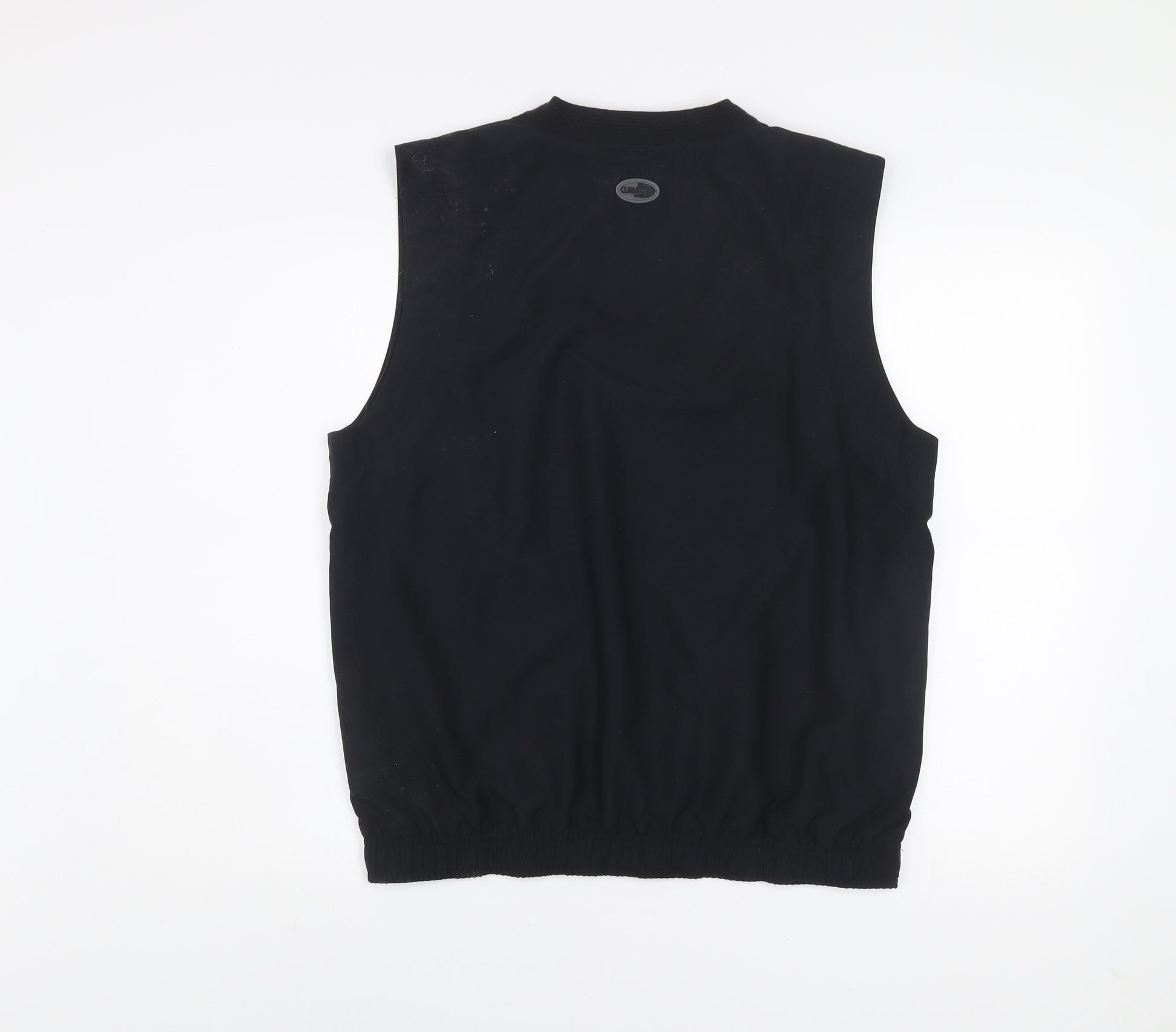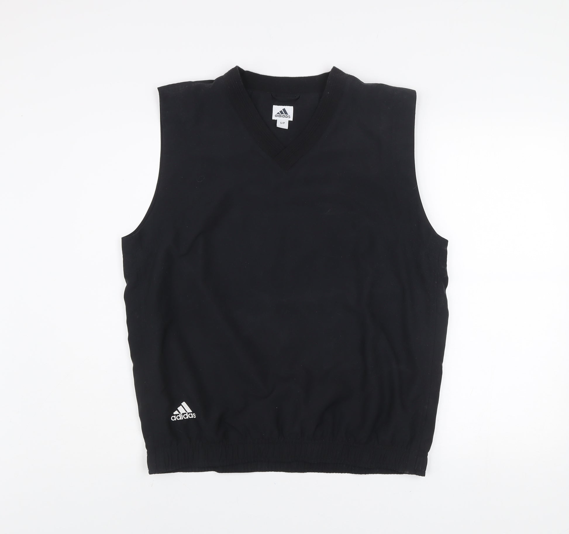 Enhance your performance and style on and off the course with this Adidas men’s black sleeveless activewear top. Designed for superior comfort and functionality, this sporty tank is crafted from 100% polyester, providing a lightweight and breathable feel ideal for varied athletic pursuits. Featuring Adidas’ renowned Climashield technology, the top offers effective moisture-wicking properties to help keep you dry and comfortable during workouts or outdoor activities. The clean black design paired with subtle Adidas logo detailing makes this piece a versatile addition to any wardrobe. The practical V-neckline and regular fit ensure unrestricted movement, while its sleeveless cut allows for ultimate flexibility during exercise. Perfect for golf, gym sessions, or running and jogging, this tank strikes a balance between performance and understated style. The polyester fabric not only aids ventilation but also ensures easy care and long-lasting durability, ideal for an active lifestyle. Whether worn as a standalone top in warmer months or layered with other training gear, this Adidas piece is a reliable option for athletes and casual wearers alike. The solid colour and minimalistic design create a timeless look, making it suitable even for casual everyday wear. The top is in very good condition, showing only minimal signs of wear such as slight lint. Its lightweight construction adds to its versatility for seasons like spring, summer, and autumn. An essential item for men who value quality sportswear, this tank fuses functionality with Adidas’ iconic style ethos, ensuring both comfort and confidence throughout your activities. Priced affordably for its quality and brand reputation, it’s a great investment for any fitness enthusiast or style-conscious individual.