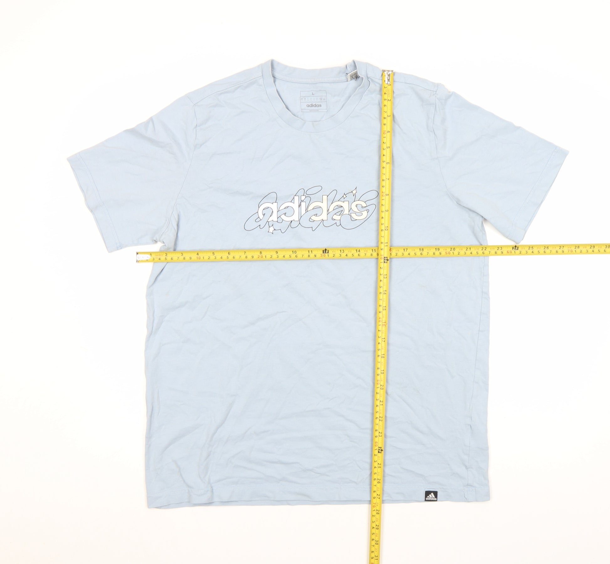 This adidas Men’s Blue Graphic Logo T-Shirt in size Large is a versatile and stylish piece ideal for everyday wear and casual outings. Designed in a soft, breathable 100% cotton jersey fabric, it delivers both comfort and durability that make it perfect for relaxed days or active weekends. The light blue colour offers a fresh, clean look that pairs effortlessly with jeans, joggers, or shorts to create a laid-back sporty aesthetic. Featuring a bold adidas logo graphic in a modern printed design across the chest, this tee gives off authentic athletic energy while maintaining a casual, easy-going vibe. The crew neckline and short sleeves add to its classic shape and make it suitable for layering or standalone wear in warm weather. The lightweight and breathable nature of the cotton ensures all-day comfort, while the regular fit provides a timeless silhouette that flatters most body types. This T-shirt is machine washable for easy care, showcasing the practicality expected from adidas apparel. Although pre-owned, it remains in very good condition, showing minimal signs of wear with slight creasing consistent with gentle handling. It’s an excellent choice for anyone seeking a dependable, stylish T-shirt for daily wear, workouts, or leisure. The adidas logo accent and iconic sports branding create an instantly recognisable look that is both fashionable and functional. Perfect for spring, summer, and early autumn, this piece combines quality, comfort, and style in equal measure. Whether you're heading to the gym, lounging at home, or catching up with friends, this T-shirt makes a reliable, effortlessly cool wardrobe staple that embodies adidas’ commitment to modern athletic fashion.