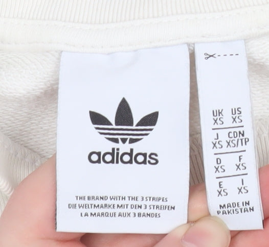 Adidas Men’s Ivory Crew Neck Pullover Sweatshirt XS Logo Cotton