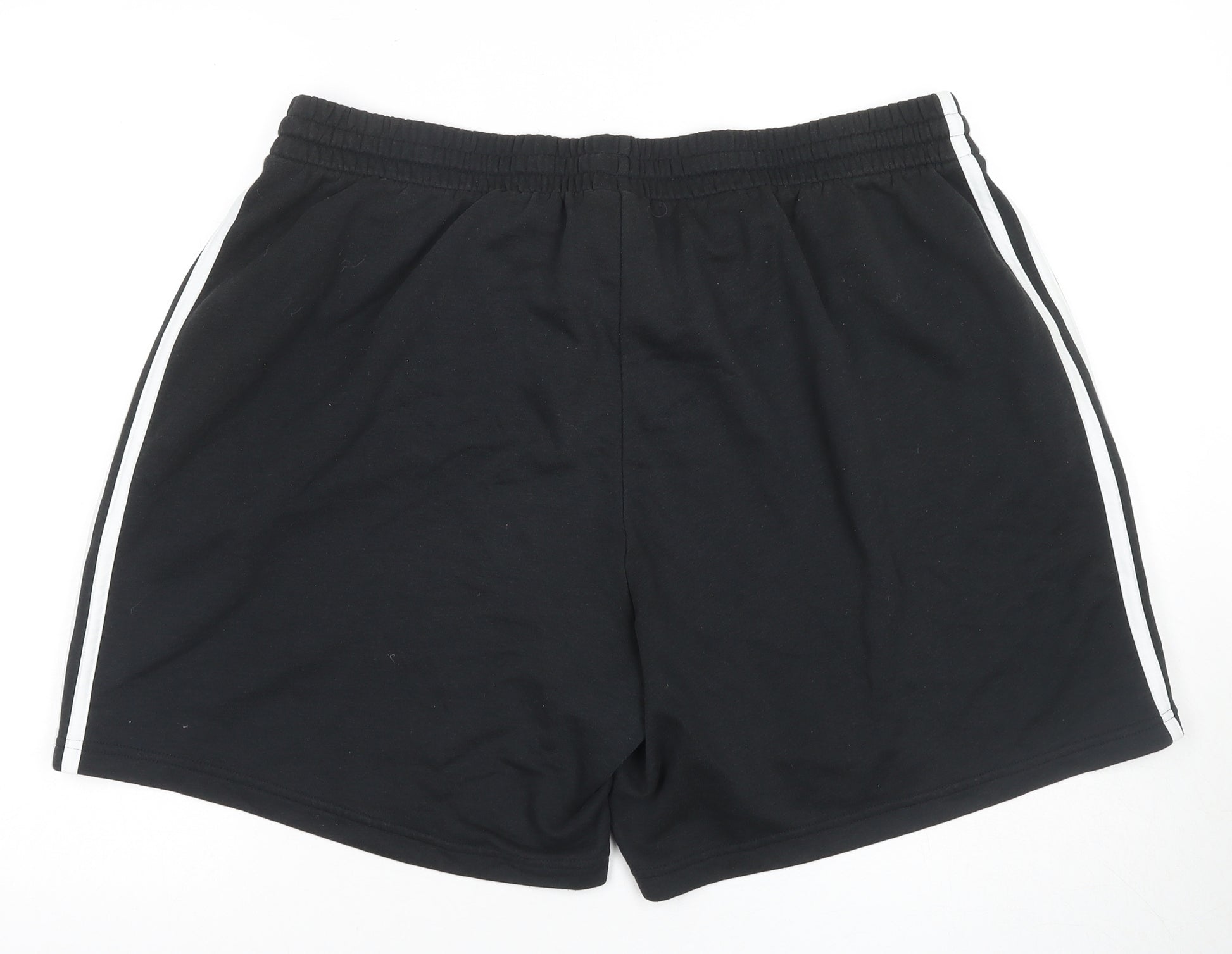 These Adidas Men's Black Athletic Shorts in size 2XL are perfect for your active lifestyle. Designed with a comfortable elastic waistband and drawstring closure, these shorts offer a customised fit for any wearer. Made from a soft blend of cotton and polyester, they ensure breathability and durability — ideal for gym workouts and jogging sessions. The regular fit and classic black colour provide a sleek, stylish look that will easily match a variety of tops. Equipped with pockets, there's plenty of space to carry small essentials while on the go. Machine washable and easy to care for, these shorts are a practical addition to any activewear collection. Don't miss out on combining versatility and style with Adidas quality.