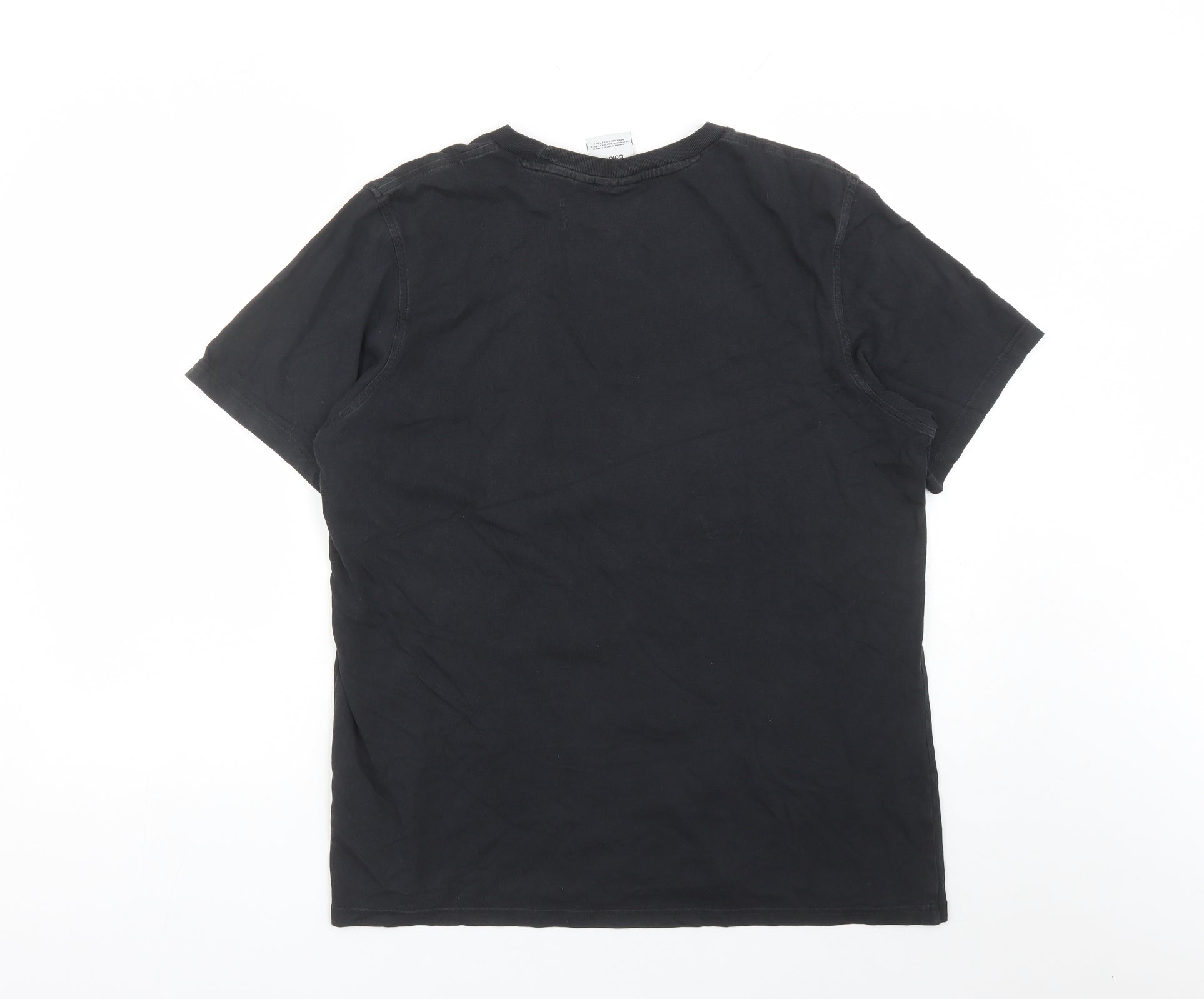 Mens Black Cotton Basic T-Shirt Size L Crew Neck Pullover