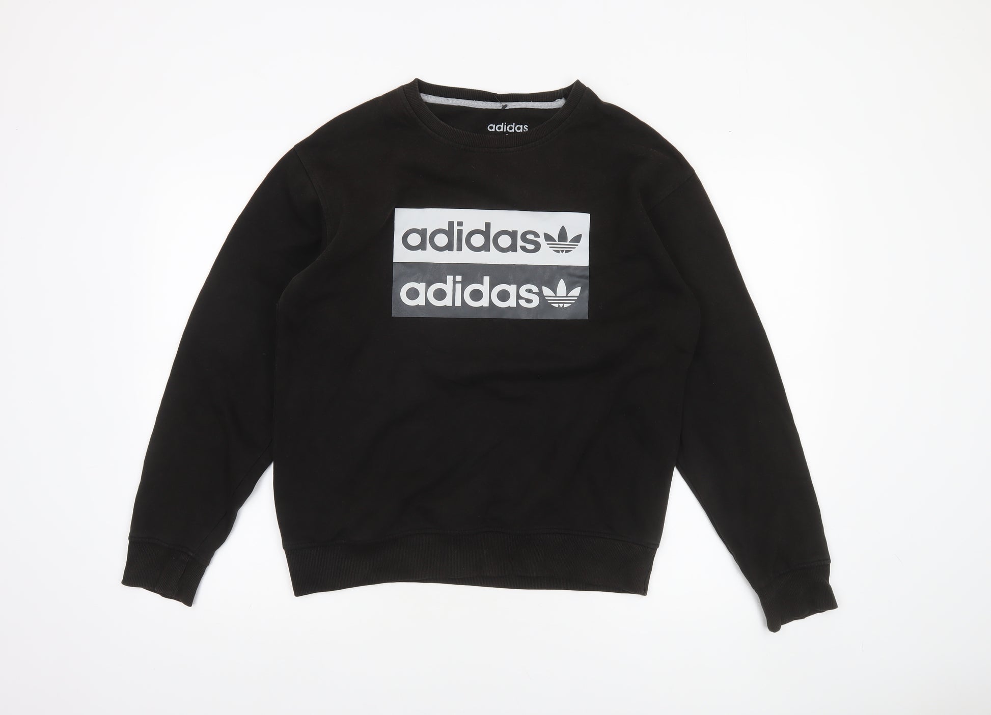 Adidas Mens Black Crew Neck Graphic Logo Sweatshirt Size S