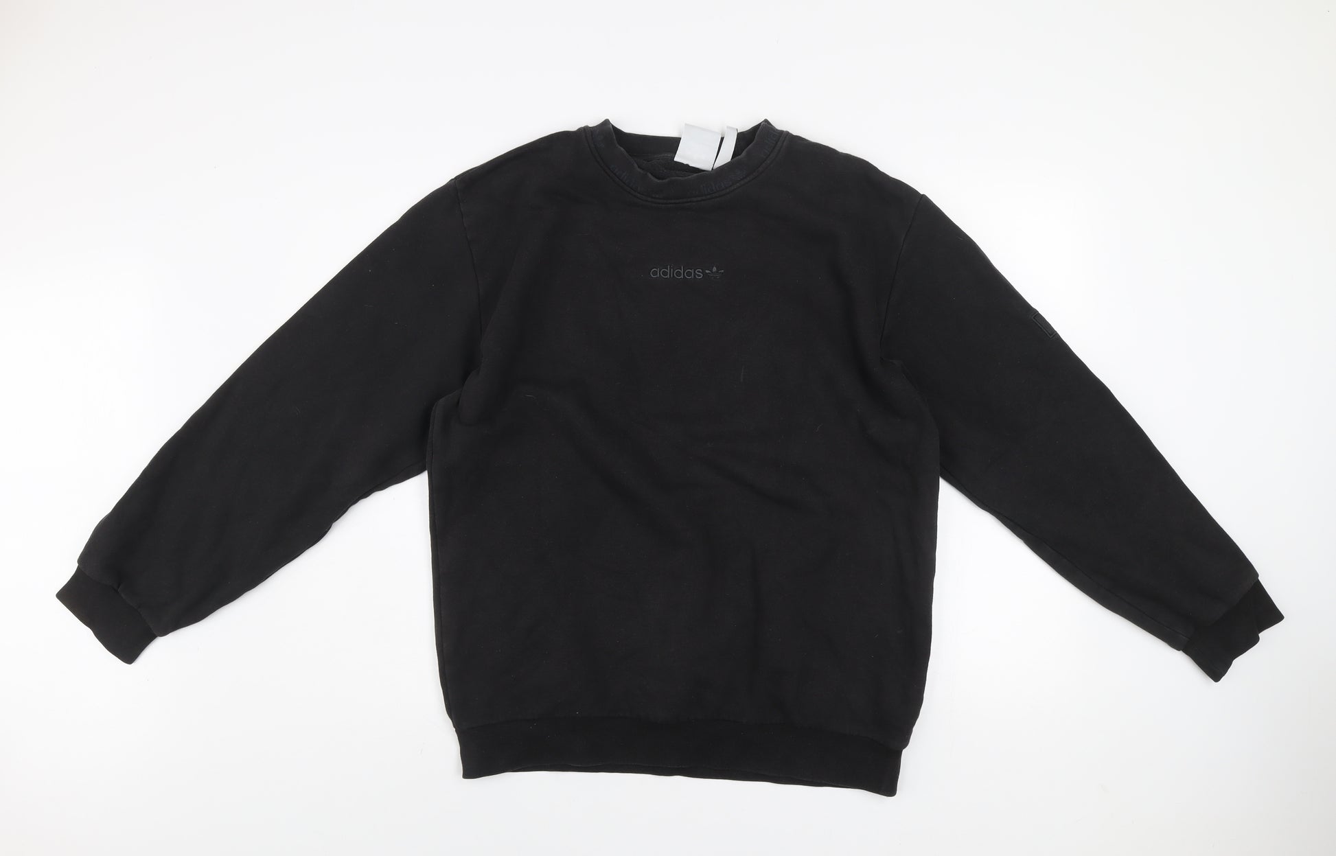 Stay effortlessly stylish and comfortable in this Adidas men's black crew neck sweatshirt, crafted from a soft and durable cotton-polyester blend. The sweatshirt features a minimalist design showcasing the classic Adidas logo subtly embroidered on the chest, exuding a timeless sporty elegance suitable for everyday wear. Designed in a regular fit, it offers ease of movement while maintaining a flattering silhouette that's perfect for layering or wearing on its own. Made from 70% cotton and 30% recycled polyester, this sweatshirt combines breathability with lightweight warmth, ideal for all-day comfort across seasons. The crew neckline, long sleeves, and ribbed cuffs and hem ensure a snug yet relaxed fit, adding to its versatile appeal. Whether you’re heading to the gym, running errands, or relaxing on casual days, this piece provides a dependable and contemporary look. The fleece fabric interior feels soft against the skin, making it a great choice for cooler weather. Its simple yet sophisticated black colour makes it easy to pair with jeans, joggers or shorts for a complete casual or athleisure outfit. Manufactured in Turkey to high-quality standards, this Adidas sweatshirt is durable, comfortable and stylish, embodying the essence of effortless sporty fashion. A must-have wardrobe essential for those who value both performance and simplicity, offering the iconic Adidas blend of comfort and practicality. In excellent condition with only minimal signs of wear, this well-maintained piece is perfect for anyone seeking authentic Adidas style and quality at a great price point.