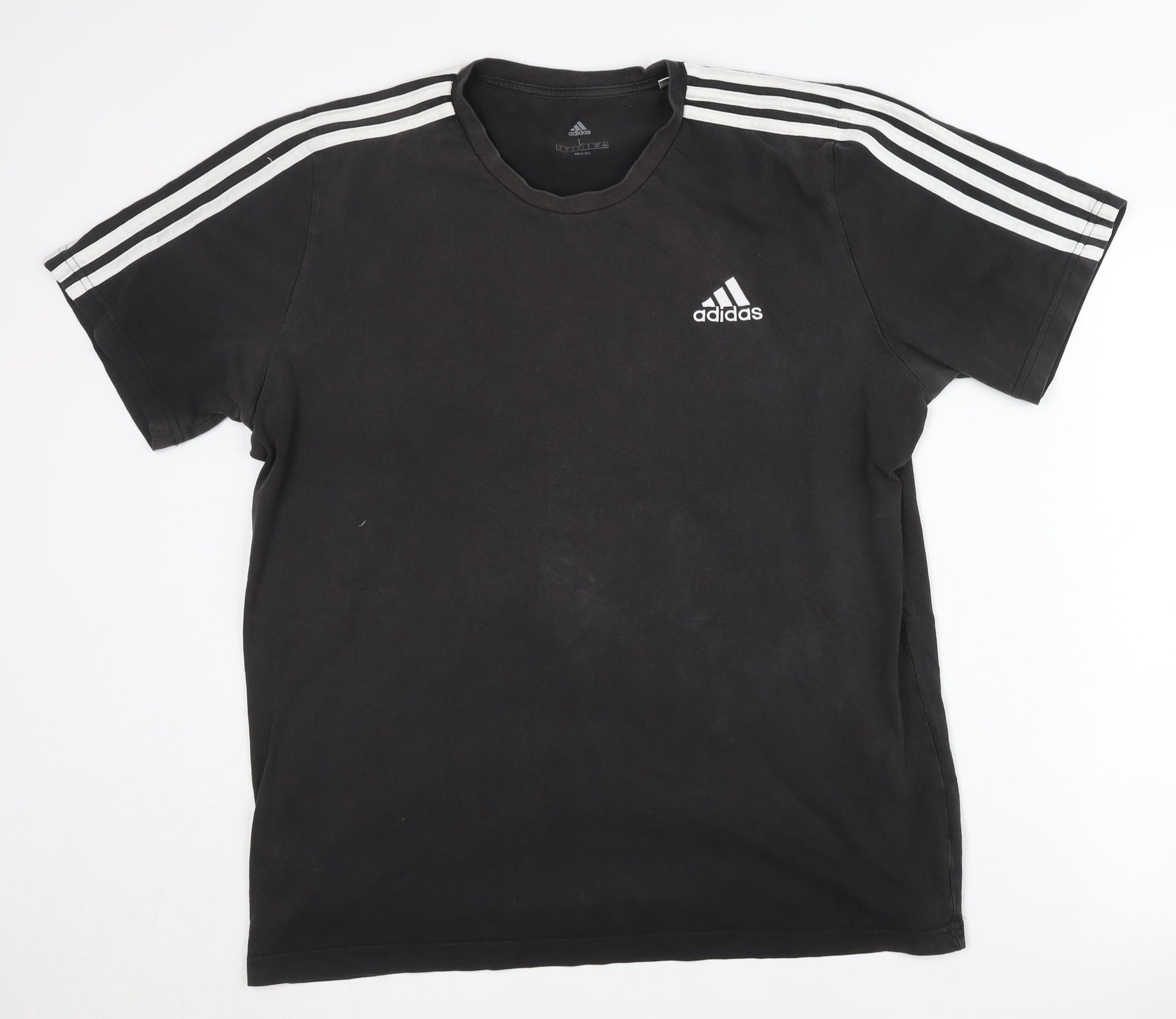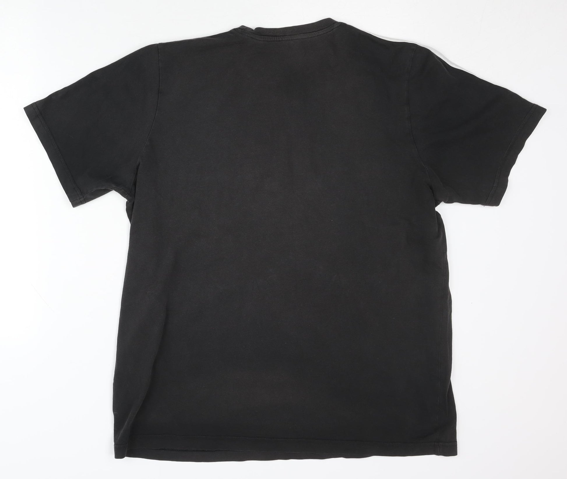 Discover style and comfort with this Adidas Men's Black T-Shirt, perfect for casual wear or athletic activities. The classic crew neck design and short sleeves provide a timeless look while keeping you comfortable throughout the day. Made primarily from soft cotton, this t-shirt not only offers a solid and durable build but also ensures maximum comfort and breathability. The plain black exterior is accentuated with the iconic Adidas logo on the chest, adding a touch of sports-driven style that can effortlessly complement any wardrobe. Whether for everyday use or for athletic performance, this t-shirt's versatile design makes it an essential piece for any man's collection. Suitable for all seasons, the solid black pattern adds a simple yet elegant touch that is easy to match with other clothing items. Despite minor signs of wear, the t-shirt is in excellent condition, machine washable, and ready to be a dependable part of your attire. Don't miss out on adding this stylish Adidas piece to your wardrobe mix—ideal for those who appreciate quality, comfort, and style in their clothing choices.