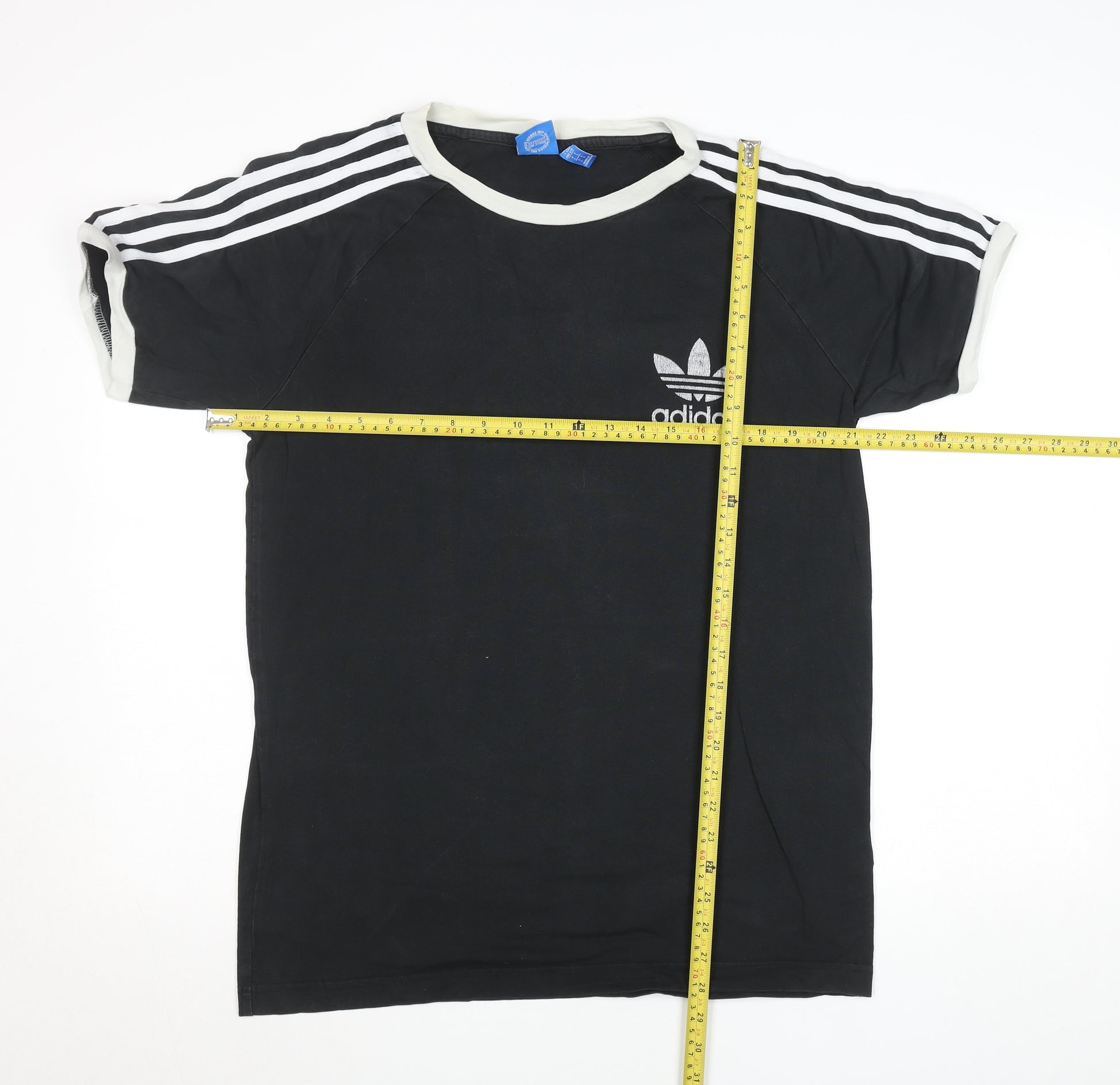 This Adidas men's black short sleeve T-shirt offers a stylish vintage look ideal for everyday wear or casual sports outfits. Crafted from 100% cotton jersey, the tee provides a soft, breathable, and comfortable fit—perfect for summer and active days. The design features the classic Adidas Trefoil logo and signature three white stripes across the shoulders, giving it a timeless sporty appeal. Featuring a crew neck and short sleeves, this regular fit T-shirt combines retro charm with modern comfort. The lightweight cotton fabric allows for natural airflow while maintaining durability for long-term wear. This piece embodies the best of Adidas heritage styling, appealing to those who appreciate quality casual wear with an authentic sporty edge. The T-shirt shows minor fading consistent with gentle wear but remains in very good overall condition with no holes or significant marks. Easy to care for and machine washable, it makes a versatile wardrobe essential that pairs perfectly with jeans, joggers, or shorts. Whether for workouts, weekend lounging, or a vintage streetwear look, this Adidas black Trefoil tee delivers both comfort and classic style. A must-have piece for collectors or fans of 80s and 90s-inspired Adidas apparel, offering a blend of nostalgic sportswear design with practical everyday appeal. Secure this genuine Adidas T-shirt today to enjoy unmatched comfort and effortlessly iconic style.