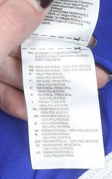 Take your training to the next level with this Adidas Men's Blue Climalite Short Sleeve Jersey T-Shirt in size Medium. Designed for men who appreciate comfort, durability, and performance, this athletic tee is crafted from 100% polyester with advanced moisture-wicking Climalite fabric technology that helps to keep you feeling dry and cool during your workout or sports activity. The technical jersey construction ensures breathability and lightweight wear, ideal for gym sessions, football practice, or a casual jog. It comes in a striking royal blue tone, complemented with Adidas’ classic white three-stripe accents on the shoulders and an embroidered logo on the chest for unmistakable style. Featuring a crew neckline and raglan short sleeves for unrestricted movement, this T-shirt offers a comfortable athletic fit suited for a range of active pursuits. Perfectly aligned for those who seek both performance and style, it embodies the trusted quality Adidas is known for. Machine washable for easy care and made from durable, quick-drying fabric, it’s an excellent choice for any season—spring, summer, or even layered in autumn workouts. This pre-owned piece is in very good condition with only minimal signs of wear, ensuring many more training sessions ahead. Whether for football, gym training, or general fitness, this Adidas Climalite shirt is a wardrobe essential for every active man. Upgrade your sportswear collection with this sleek, performance-ready T-shirt that balances function with iconic style. Priced affordably, it delivers premium Adidas quality without compromise – a dependable choice for your active lifestyle.