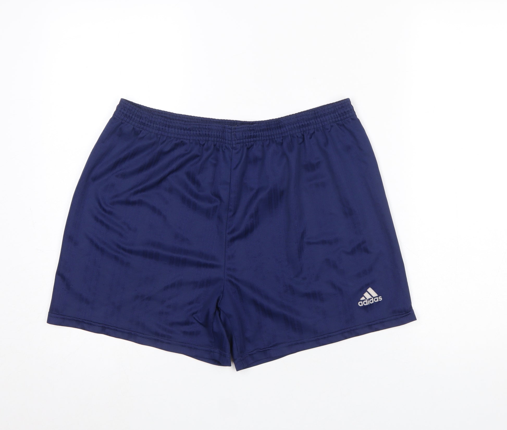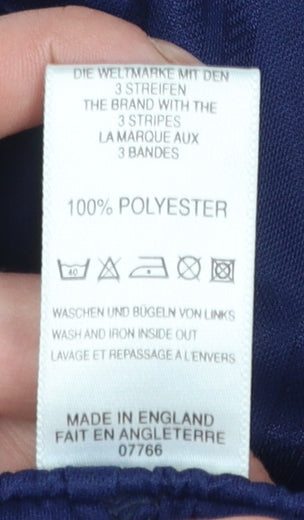 Step into effortless performance comfort with these Adidas Men's Blue Athletic Shorts. Designed for active lifestyles, these shorts feature high-quality 100% polyester construction that provides lightweight breathability and quick-drying comfort, keeping you cool and dry during even the most intense workouts. The clean navy blue colour is both classic and versatile, making them ideal for the gym, football training, running, or simply for casual sportswear styling. Built with a regular fit and elasticated waistband complete with a drawstring, they deliver ease of movement and a secure, adjustable fit. The shorts include subtle Adidas branding at the hem, showcasing the iconic logo and reinforcing their authentic sporty appeal. Crafted in England with attention to fabric durability, these shorts are machine washable for easy care and long-lasting wear. Perfect for spring and summer training sessions, they combine functional design with a timeless athletic look. Whether you’re hitting the field, jogging, or relaxing after a workout, these Adidas shorts provide comfort and quality you can count on. Pair them with your favourite performance tee or hoodie for a complete athletic ensemble that fits seamlessly into your active wardrobe. A must-have staple for those who value both performance and simplicity in sportswear.