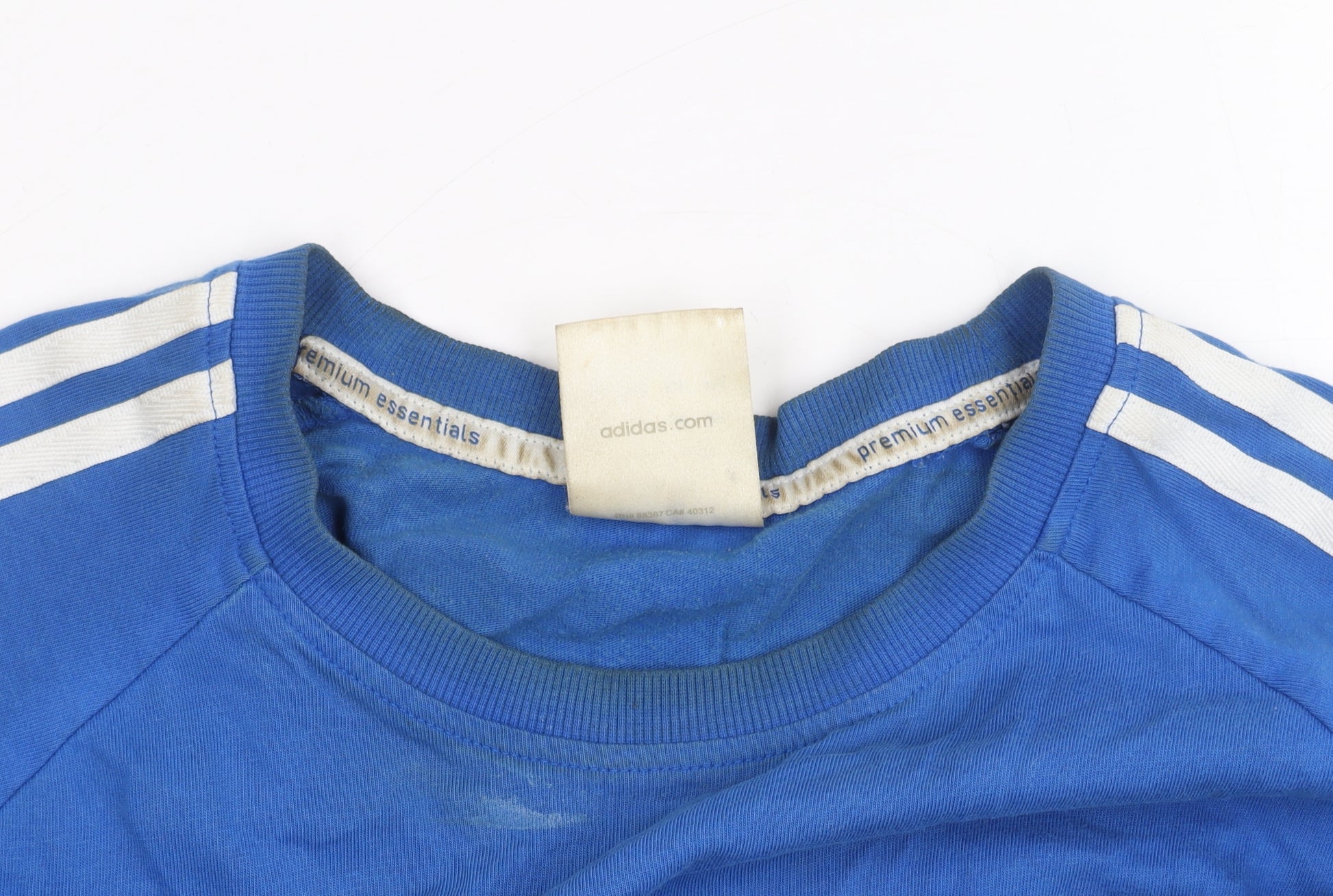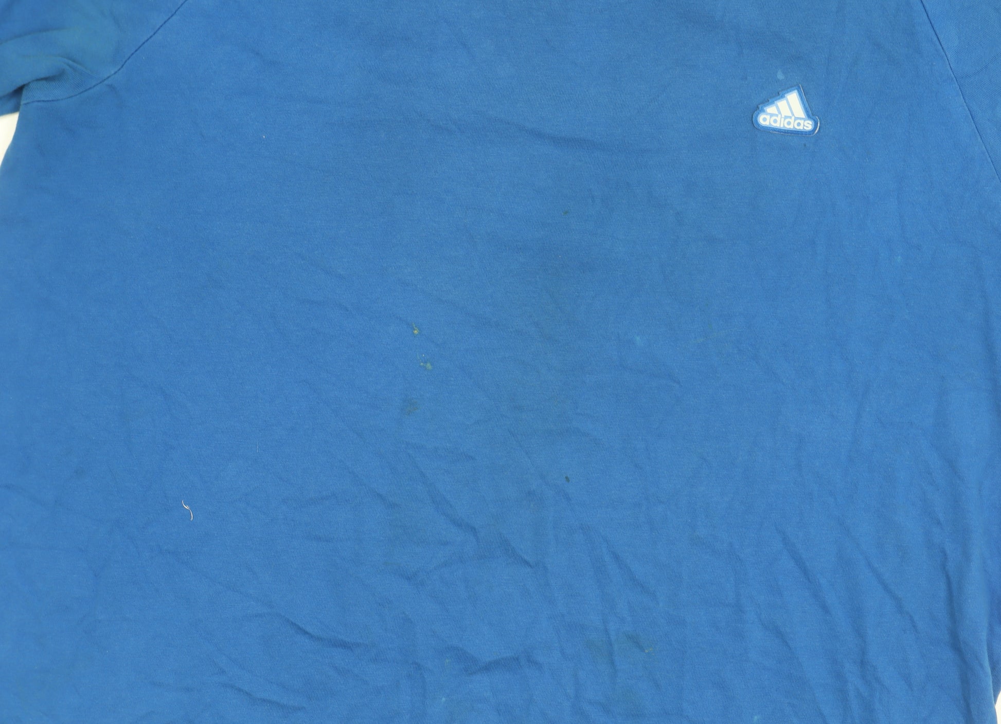 This Adidas men's T-shirt, size Large, is crafted from 100% cotton for a soft and comfortable feel. Its vibrant blue colour and iconic stripe design on the shoulders make it a standout piece for any casual wardrobe. The T-shirt features a classic crew neck and short sleeves, providing versatile fashion for every season. Perfect for both sports enthusiasts and casualwear lovers, it exhibits the quality and style synonymous with the Adidas brand. Despite minor wear and faint stains, this piece remains in very good condition, offering an effortless blend of comfort and style. Ideal for an active lifestyle or relaxing at home, grab this T-shirt to elevate your casual collection.