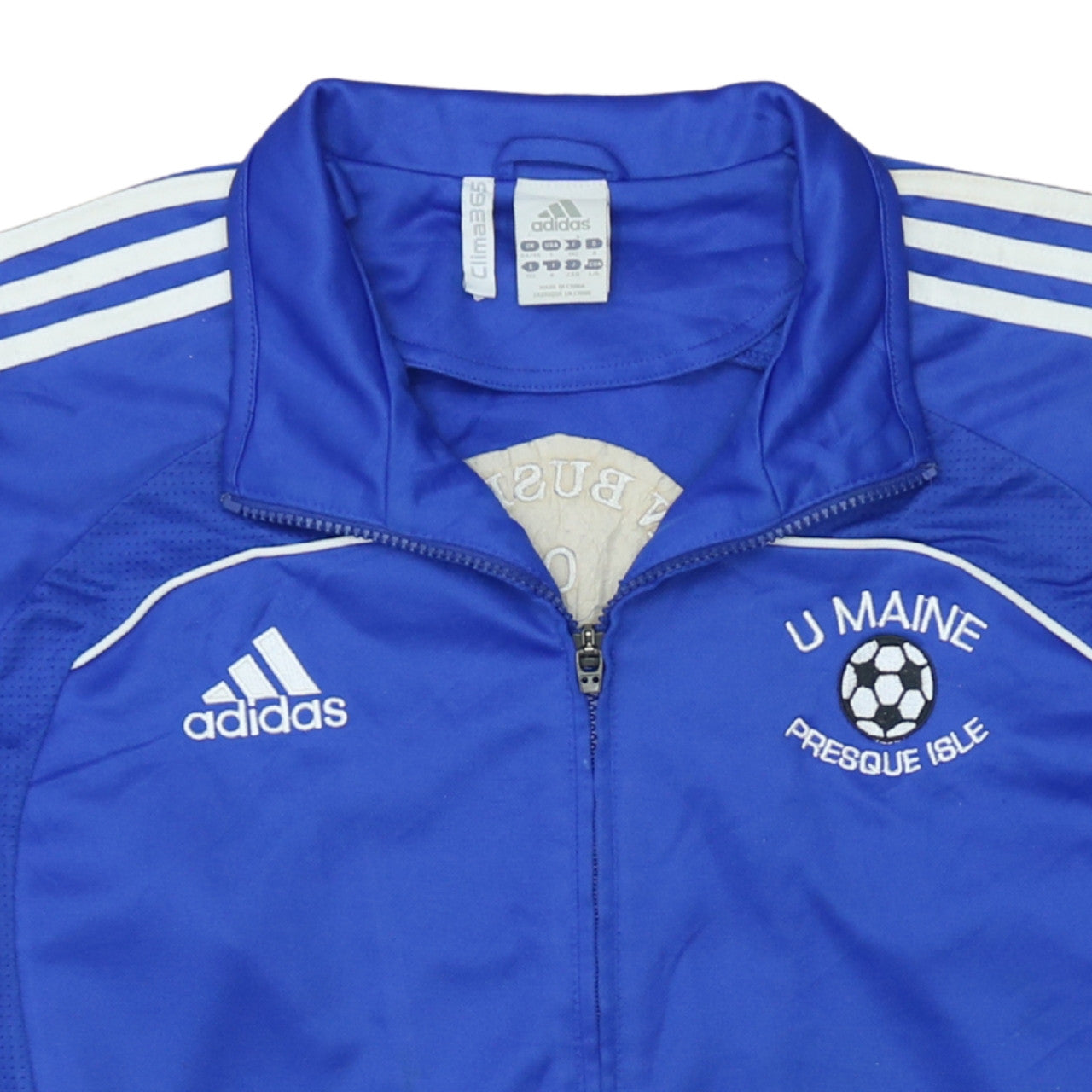 This Adidas Men's Blue Track Jacket in size Large delivers the perfect mix of sporty style and everyday comfort. Crafted from 100% polyester with Clima365 technology, it’s designed to keep you cool and dry during active sessions while maintaining a lightweight and durable feel. Featuring Adidas’ signature three stripes along the sleeves, a full zip fastening, and zippered side pockets, this jacket is perfect for versatile wear whether you’re training, warming up, or simply heading out casually. The front proudly showcases the embroidered 'U MAINE Presque Isle' football design, adding a classic sports aesthetic, complemented by subtle piping details for a sleek, structured finish. With a stand-up collar enhancing comfort and fit, it’s ideal for layering during cooler months or wearing alone on mild spring or autumn days. The breathable microfibre polyester construction provides flexibility and moisture-wicking performance, ensuring comfort whether you’re running, at the gym, or engaging in casual outdoor activities. The jacket comes in vibrant royal blue with white accents, delivering standout athletic appeal from Adidas. Perfect for football enthusiasts, university supporters, or anyone seeking a stylish, functional piece of activewear. This pre-owned jacket remains in very good condition, showing only minimal signs of light wear and minor marks typical of gentle use. Machine washable for easy care. Whether for sport or stylish leisurewear, this Adidas track jacket is an excellent addition to any active wardrobe, offering quality, comfort, and proven Adidas performance.