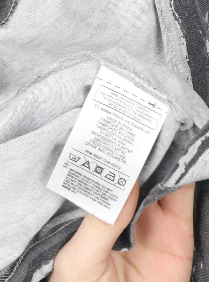 Upgrade your casual and sporty wardrobe with this Adidas Men's Grey Camouflage Sports Essentials T-Shirt, designed for both comfort and style. Crafted from a soft cotton and polyester blend, this regular fit tee combines breathability with durability, perfect for everyday wear or athletic activities. The lightweight jersey fabric ensures ease of movement, while the short sleeves and crew neck provide a classic silhouette that pairs effortlessly with jeans, joggers or shorts. The iconic Adidas logo boldly printed across the chest adds a statement finish, showcasing the brand's unmistakable sporty aesthetic.The modern camouflage pattern in shades of grey gives this T-shirt a stylish edge, making it versatile enough to transition from casual outings to training sessions. Ideal for summer wear, the breathable fabric helps you stay cool and comfortable throughout the day. The garment is machine washable for easy care and long-lasting wear, keeping maintenance simple and convenient.Adidas’ commitment to quality and performance is evident in this design, aligning with their globally recognised reputation for sporty innovation. Whether you’re hitting the gym, running errands, or just relaxing, this tee works as a go-to choice that balances functionality with on-trend fashion. The ‘Climalite’ technology incorporated in its construction ensures sweat-wicking comfort, allowing you to remain fresh and dry for longer. For those who appreciate a blend of street style and athletic practicality, this T-shirt delivers both seamlessly.In excellent pre-owned condition, this piece shows minimal wear and has been carefully checked to ensure quality. Perfect for daily use, it brings versatile appeal to any man’s wardrobe while maintaining Adidas’s signature sporty charm. A must-have staple for active and casual looks alike, offering great value and reliable quality from one of the world’s most trusted names in sportswear.