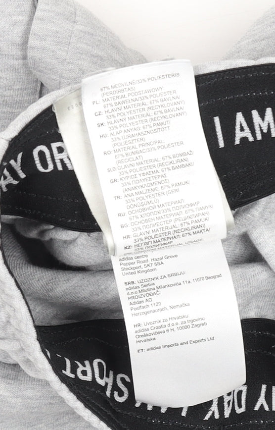 These adidas men's grey jogger sweatpants offer unbeatable comfort for everyday wear or your active lifestyle. Crafted from a soft, breathable jersey blend of 67% cotton and 33% polyester, they ensure lasting ease whether you’re hitting the gym, running errands, or relaxing at home. The sleek, modern design features a comfortable elastic waistband with an adjustable drawstring for a personalised fit, alongside functional side pockets for storing small essentials. The tapered leg with cuffed hems gives them a sharp, athletic silhouette, while the subtle adidas logo provides an iconic finishing touch without overstatement. Designed for versatility, these joggers are ideal for gym and training sessions, running, walking, or simply lounging in casual style. Their durable yet lightweight fabric offers breathable performance and freedom of movement, making them great for all-day wear in cooler seasons such as autumn, spring, and winter. In a neutral grey shade, they pair effortlessly with any top—from hoodies and tees to sports jackets—making them an essential addition to any active wardrobe. These trousers are in good pre-owned condition with a small mark on the right leg and gentle signs of wear, yet they remain in great shape and perfectly wearable. For those seeking both functionality and timeless streetwear appeal, these adidas joggers deliver classic comfort and practicality. Perfect for men who enjoy style that transitions effortlessly from gym to leisure, these trousers are a great option for sporty, relaxed dressing, offering both performance and everyday style in a signature adidas design.