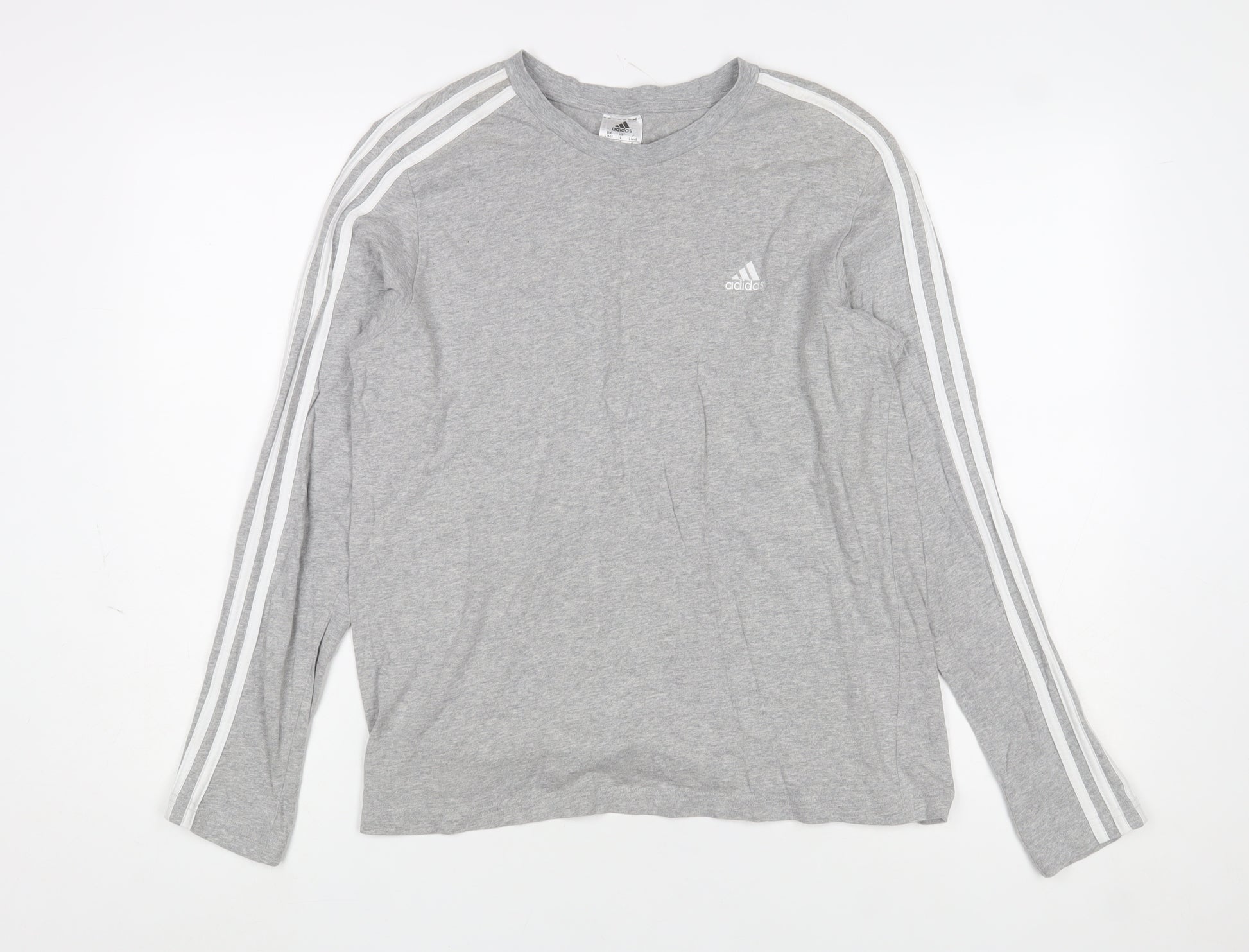 Adidas Mens Grey Long Sleeve Crew Neck Cotton Sports Top Size L