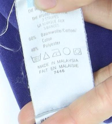 Step out in style with this vibrant Adidas men's T-shirt, perfect for sport enthusiasts and casual wear alike. In a striking purple hue, this T-shirt is designed to grab attention while keeping comfort a priority. Crafted with a blend of 60% cotton and 40% polyester, it ensures a soft feel against the skin and breathability throughout the year, making it a versatile addition to your wardrobe. The classic crew neck design coupled with short sleeves provides easy layering and effortless wear. Featuring the iconic Adidas logo in an embroidered finish on the front, this T-shirt showcases your taste for high-quality sports fashion. Its regular fit caters to a wide range of body types, ensuring a comfortable fit for those relaxed days or intense workout sessions. Ideal for all seasons, pair this solid-patterned tee with your favourite jeans or shorts to complete a laid-back yet sporty look. Despite being slightly worn, this piece remains in excellent condition, free from tags, ready to join your collection as a staple piece. Don't miss out on the chance to own a stylish and practical Adidas T-shirt that blends comfort with iconic brand appeal, sure to be a go-to selection in your clothing lineup.