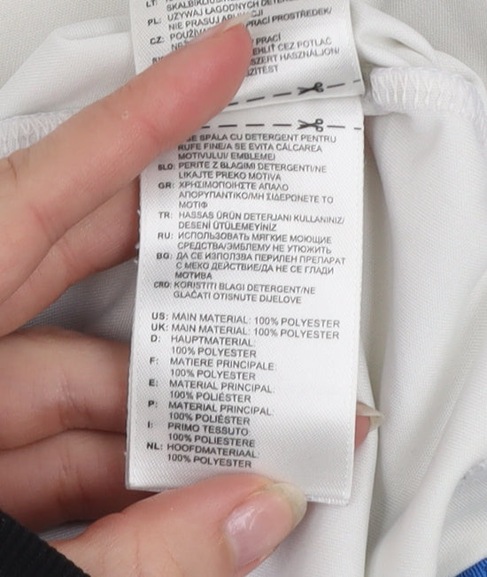 Elevate your workout wardrobe with this Adidas men’s short sleeve sports T-shirt, crafted for performance and comfort. Designed in a crisp white with striking blue accents and the iconic Adidas stripes, this top is ideal for running, football, gym training, or any high-energy activity. Its lightweight, breathable polyester material wicks moisture away from the skin, keeping you cool and dry during intense sessions. Styled with a classic crew neckline and raglan sleeves to allow unrestricted movement, the shirt combines practicality with timeless athletic appeal. Constructed using Adidas’ renowned Climacool technology, the fabric promotes ventilation and quick drying, helping to regulate body temperature during workouts. The solid colour design and bold logo detailing at the chest provide a sporty, confident look that works just as well for casual wear as it does in the gym. This regular-fit, athletic-cut T-shirt offers flexibility and durability, suitable for both everyday training and competition. Made entirely from 100% polyester, it’s also machine washable for easy care and long-lasting use. Despite minor signs of previous wear, including a small faint mark on the front, the T-shirt remains in very good condition with plenty of life left. Perfect for athletes or those seeking reliable, stylish activewear for the warmer months of spring and summer, this Adidas piece blends performance innovation with a modern aesthetic. Whether you’re hitting the pitch, running outdoors, or simply keeping active at the gym, this versatile top provides the comfort and confidence you need to perform your best while maintaining a clean, sporty appearance. Don’t miss out on adding this essential Adidas activewear T-shirt to your collection at a great value.