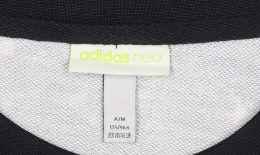 Add a modern edge to your casual wardrobe with this adidas Neo Men’s Black Marble Effect Sweatshirt in size Medium. Featuring a bold black and white marbled print design complemented by the iconic adidas triple stripe detailing along the sleeves, this sweatshirt perfectly balances sporty energy with streetwear flair. Made from 100% polyester jersey fabric, it offers lightweight breathability and exceptional comfort, making it ideal for layering in cooler months or wearing on its own during milder weather. The crew neck design, long sleeves, and ribbed cuffs and hem provide a timeless silhouette and relaxed fit for everyday wear. Suited for men who appreciate versatile styling, it transitions easily from your morning jog to casual weekend outings. The adidas logo accent on the chest adds a subtle branded finish, while the smooth inner texture ensures comfort throughout the day. This pullover sweatshirt is machine washable for easy care and maintenance. Designed with functionality in mind, it’s perfect for gym sessions, casual training, or simply relaxing in athleisure style. In excellent pre-owned condition with slight, natural signs of wear, this sweatshirt has no visible damage, stains, or defects. For those who prefer performance and comfort accompanied by a trendy aesthetic, this adidas Neo sweatshirt offers both durability and standout design. Ideal for the Autumn, Winter, and Spring seasons, this piece presents a modern athletic appeal perfect for everyday wear. This quality adidas Neo sweatshirt offers a stylish, relaxed fit suitable for layering or stand-alone comfort, an ideal addition to any sports-casual ensemble.