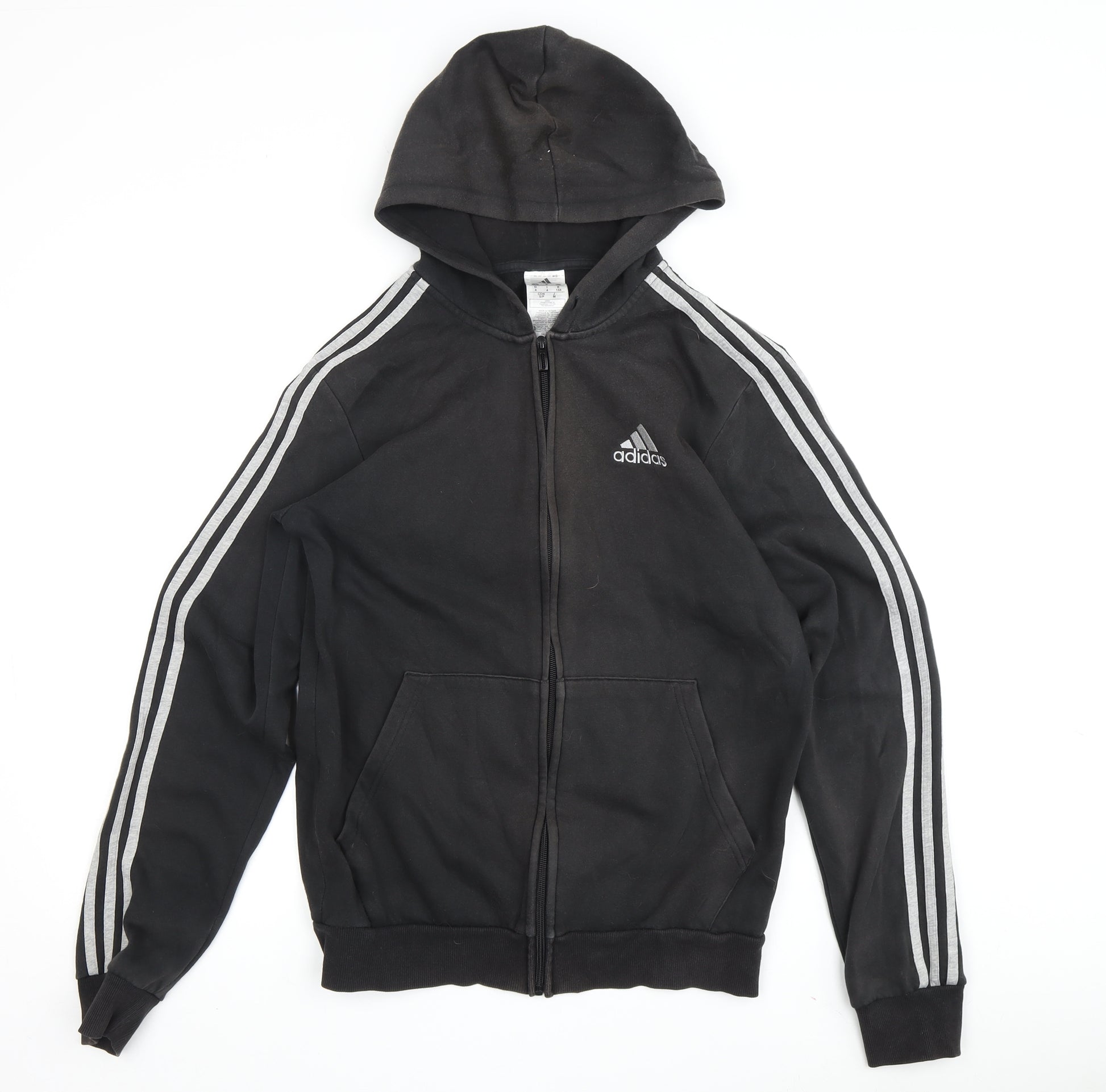 Discover comfort and style with this Adidas Black Full Zip Hoodie. Designed for unisex adults, this hoodie combines classic style with practicality. Its regular fit and long sleeves ensure you stay warm during the cooler months, making it perfect for both autumn and winter. The hoodie features a full zip closure for easy wear and removal, while the iconic Adidas logo accent adds a stylish touch. Made from a high-quality blend of 70% cotton and 30% polyester fleece, it promises durability and softness, ideal for gym and training activities. Easily machine washable, this hoodie offers convenience in everyday wear. Despite slight wear, it remains in very good condition with no major flaws. Perfect for those looking for a comfortable, everyday hoodie that doesn't compromise on style. Whether you're hitting the gym or relaxing at home, this Adidas hoodie is your go-to choice for casual comfort.