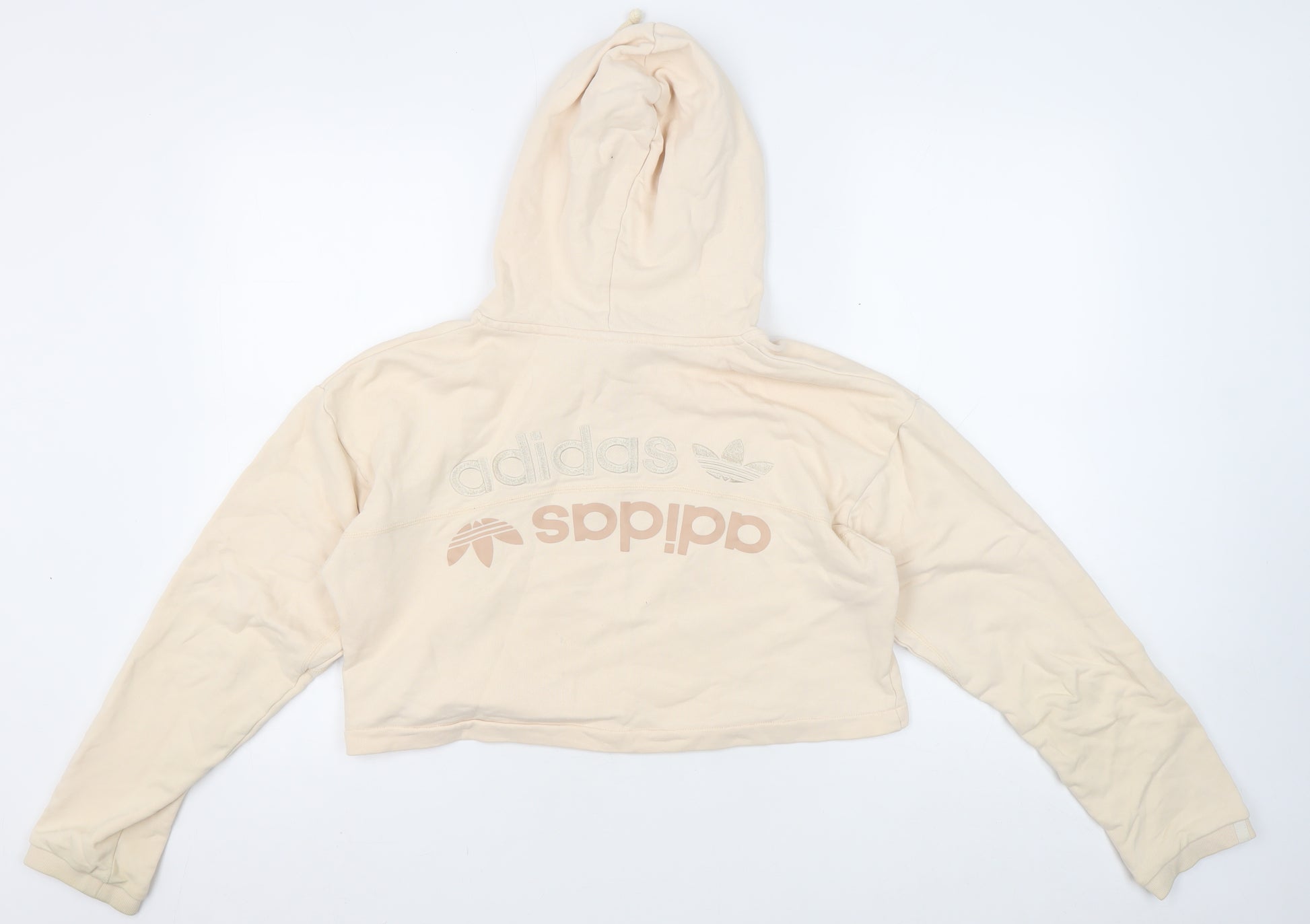Adidas Women Beige Crop Hoodie Size S, Cotton, Logo