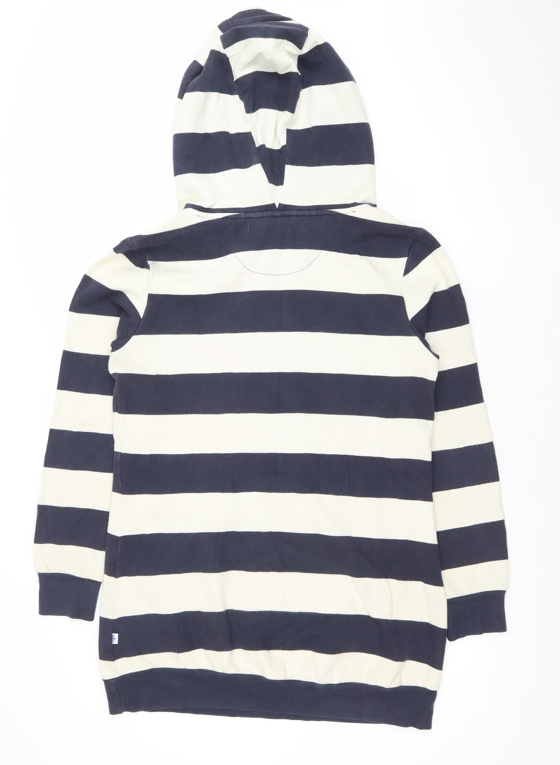 Adidas Women Navy & White Striped Pullover Hoodie Size 10 Cotton