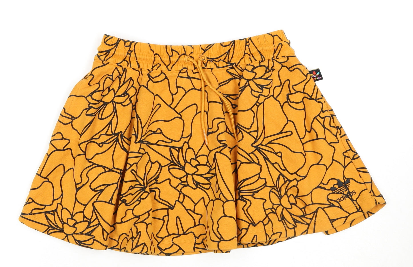 Brighten up your wardrobe with this vibrant Adidas Women’s Yellow Floral A-Line Skirt, designed for stylish ease and comfort. Perfect for casual outings, this skirt features a playful floral pattern that adds a splash of colour and fun to any ensemble. Made from a soft and breathable jersey fabric composed of 70% cotton and 30% polyester, it guarantees all-day comfort. With its elastic waist and convenient drawstring closure, this versatile piece offers a customizable fit, accommodating a range of movements and activities without compromising on style.The skirt's short length gives it a flirty and youthful appearance, emphasizing its suitability for spring and summer seasons. Its mid-rise design maintains classic silhouette integrity. Ideal for casual occasions, this skirt is also machine washable, making it an easy-to-care-for addition to your collection. Whether you're heading for a day out with friends or lounging on a sunny day, this Adidas skirt is a perfect go-to option.Seize the opportunity to enhance your style with this essential fashion piece from Adidas, reflecting both contemporary trends and timeless appeal. Its excellent condition ensures that it retains its vibrant colour and quality, ready to complement your collection seamlessly.