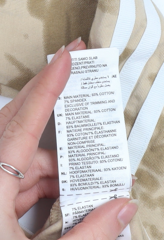 Adidas Womens Beige Cropped Long Sleeve T-Shirt Size S Tie-Dye Cotton Blend