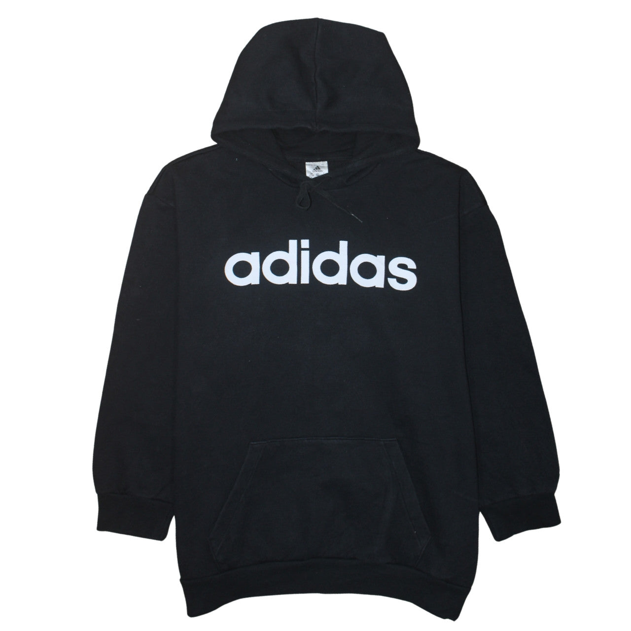 Step out in timeless style and comfort with this classic black Adidas Women's Pullover Hoodie, the ideal choice for everyday casual wear and active lifestyles. Crafted from a soft and cosy fleece blend of cotton and polyester, this hoodie provides excellent warmth and comfort, making it perfect for autumn, winter, and cool spring days. The fleece interior ensures a plush feel against the skin, while the hood with drawstring closure offers adjustable coverage to keep you snug on breezy days. Designed with a relaxed, regular fit, this hoodie allows for ease of movement whether you're working out, running errands, or lounging in comfort. The front proudly features the iconic Adidas logo in bold white lettering, giving it a sporty yet stylish edge that pairs effortlessly with leggings, joggers, or jeans. The kangaroo pocket at the front provides both practicality and added warmth for your hands. This Adidas hoodie combines style, performance, and functionality — perfect for walking, training, or simply adding a laid-back statement piece to your casual wardrobe. Machine washable for easy care, it maintains shape and softness wash after wash. Ideal for fans of modern streetwear or sporty aesthetics, this piece embodies Adidas' dedication to quality and comfort. In excellent used condition, this hoodie shows only minimal signs of wear with no visible marks or flaws. A wardrobe essential that blends everyday versatility with authentic athletic style — ready to be worn and loved once again.