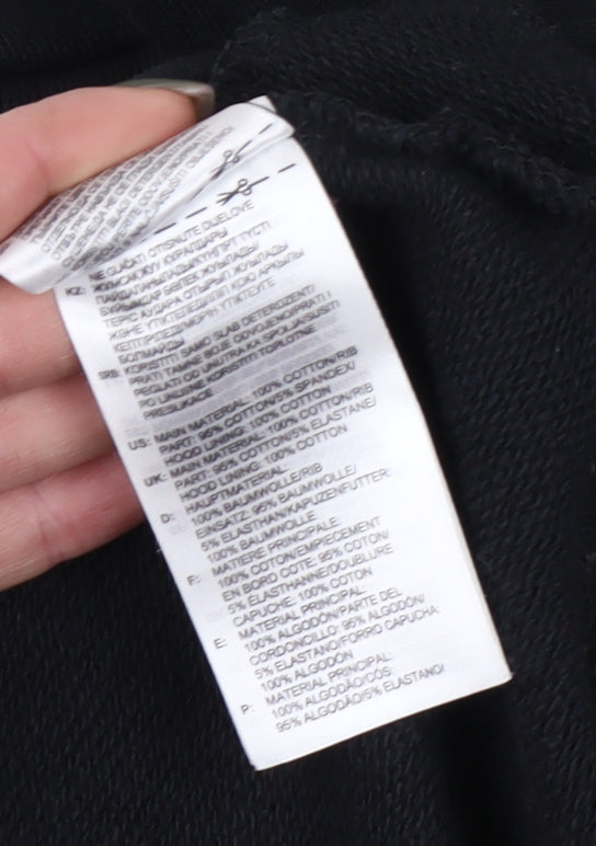 This Adidas women's hoodie offers classic style with comfort, making it an ideal addition to your casual wardrobe. In classic black, it features a bold logo print, embodying a sporty yet fashionable vibe. Constructed from a high-quality cotton and elastane blend, this hoodie ensures both softness and stretch, providing a comfortable fit for daily wear. The kangaroo pocket at the front adds practicality, giving you a spot to warm your hands or store essentials on the go.Designed with long raglan sleeves, it promotes a relaxed fit that enhances mobility, while the hooded neckline adds an extra layer of warmth and protection against the elements. Whether you're heading out for a casual day out or lounging at home, this hoodie covers all bases, providing versatility for any wardrobe. Machine washable, it offers easy care, making it a go-to choice for everyday wear.Complete with a pullover closure, this hoodie champions simplicity and ease of wear, effortlessly blending function with style. Despite a small mark on the cuff, the overall condition is good, assuring you of a product that's ready to wear and enjoy. This hoodie is ideal for those seeking a blend of Adidas's signature quality and contemporary style.