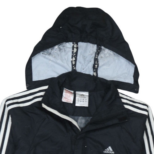 Stay stylish and comfortable whatever the weather with this Adidas women’s black hooded windbreaker jacket. Designed for versatility and casual wear, this mid-length jacket features a full zip front and a lightweight yet durable polyester shell. Crafted from 100% polyester, it provides excellent water resistance, making it ideal for light rain and breezy conditions. The interior is lined for added comfort and breathability, ensuring you stay cool and dry throughout your day. With Adidas’ signature three-stripe detailing running down the sleeves and the iconic logo on the chest, this jacket combines sporty appeal with everyday practicality. The hood offers additional protection from the elements, while the elasticated cuffs help keep out the chill. Handy zipped front pockets provide secure storage for your essentials when you’re on the go. Perfect for transitional seasons like spring and autumn, this jacket pairs effortlessly with jeans or leggings for a laid-back look. Whether you’re travelling, commuting, or taking on outdoor workouts, this jacket’s lightweight build and packable design make it a go-to choice. The flattering regular fit provides unrestricted movement, while the timeless black colour ensures easy coordination with your wardrobe. This Adidas windbreaker is machine washable for easy care and has minimal signs of use, showing only light general wear. A great option for everyday wear, it blends fashion, comfort, and performance effortlessly — offering the perfect balance of sporty style and functional outerwear. Ideal for casual outings, travel, or daily layering, this Adidas Women’s Size 14 Hooded Windbreaker Jacket proves that performance and streetwear sophistication can come together in one dependable piece.