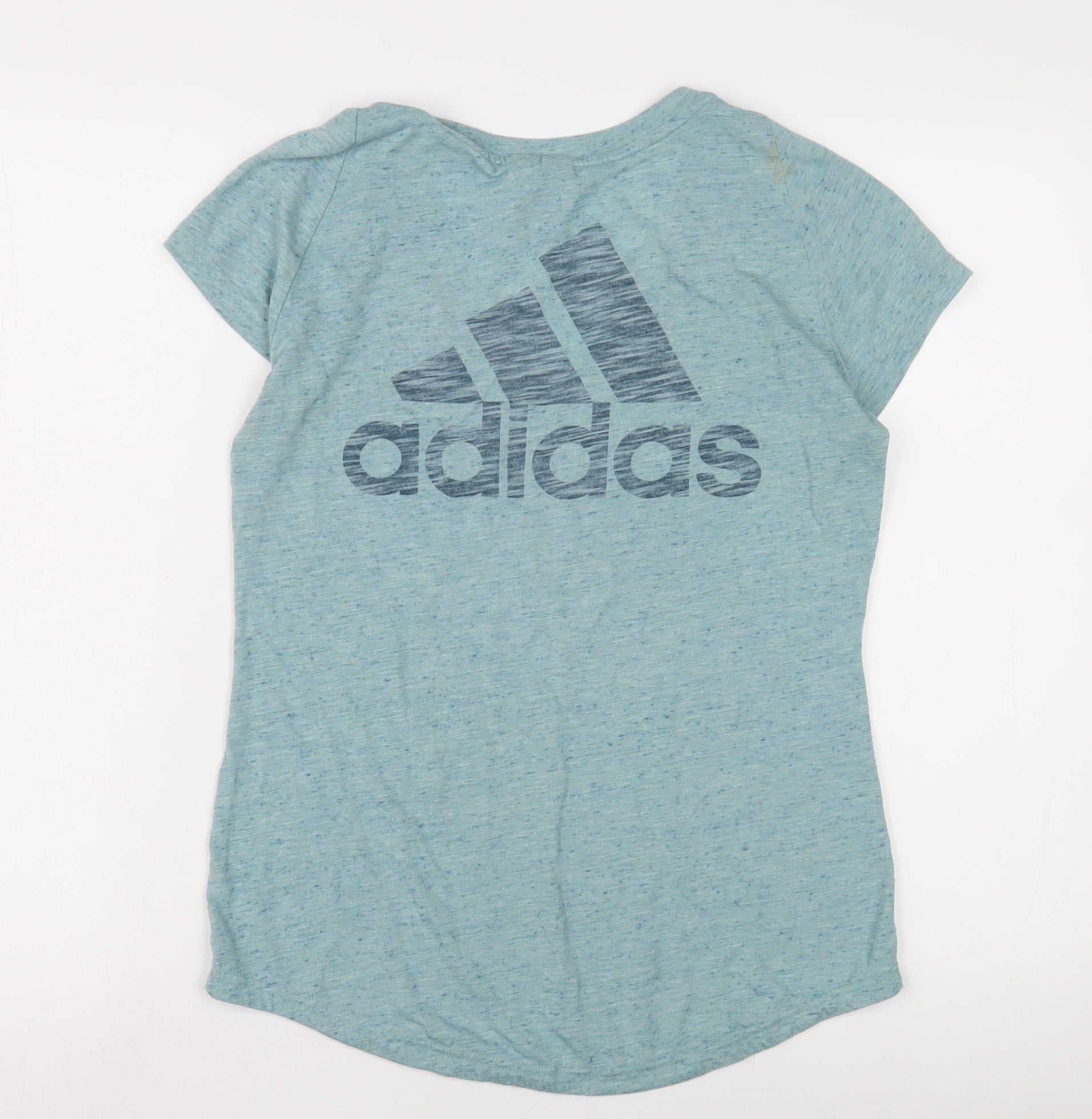 Elevate your workout wardrobe with this Adidas Women's Blue V-Neck T-Shirt, perfect for gym and training enthusiasts. Crafted from a comfortable blend of 60% cotton and 40% polyester, this top ensures breathability and durability during intense workouts or casual wear. Featuring a regular fit and a classic V-neck design, this activewear staple offers both style and functionality. Its versatile solid blue hue complements any pair of workout leggings or jeans, making it an ideal choice for all seasons. The jersey fabric provides a smooth texture against the skin, while the short sleeves offer unrestricted arm movement. This piece, designed for the modern, active woman, is machine washable, ensuring easy care and maintenance. Despite a minor stain on the back, its overall condition remains very good, allowing for numerous stylish outings. Whether you're hitting the gym or running errands, this T-shirt transitions seamlessly from activewear to casual chic. Don't miss out on adding this versatile Adidas piece to your collection. Grab it now for just £10.00, and enjoy the perfect blend of comfort and style.