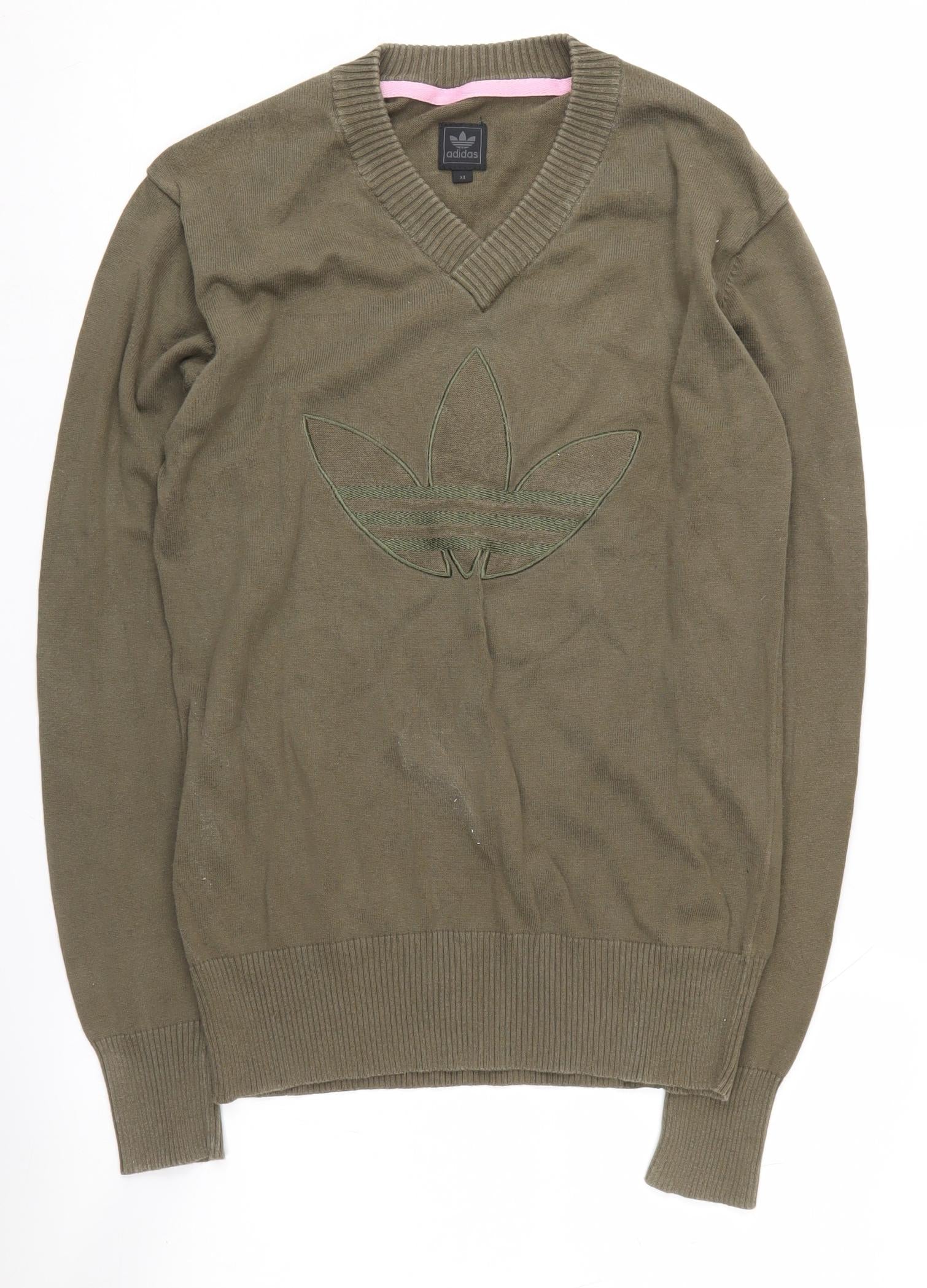Elevate your casual wardrobe with this chic Adidas jumper in a versatile green hue. Crafted for women, this piece combines comfort with sporty style, making it perfect for both everyday wear and relaxed outings. The jumper features a classic V-neckline and long sleeves, tailored for a regular fit that makes it suitable for various occasions. It is thoughtfully designed in a tight-knit fabric that provides warmth, making it an ideal choice for the autumn and winter seasons. Constructed from 100% cotton, the jumper offers a soft touch and breathable fabric, ensuring all-day comfort. With a prominent Adidas logo accent, it embodies the iconic sporty theme that Adidas is known for. Machine washable for hassle-free care, this jumper is both practical and stylish. Slight wear is visible but the overall condition is very good, with the piece maintaining its vibrant colour and structure. Ideal for casual settings, pair this jumper with jeans or leggings for an effortlessly put-together look. Perfect for adding a touch of branded flair to your attire, this Adidas jumper ensures that you stay stylish and warm throughout the cooler months.