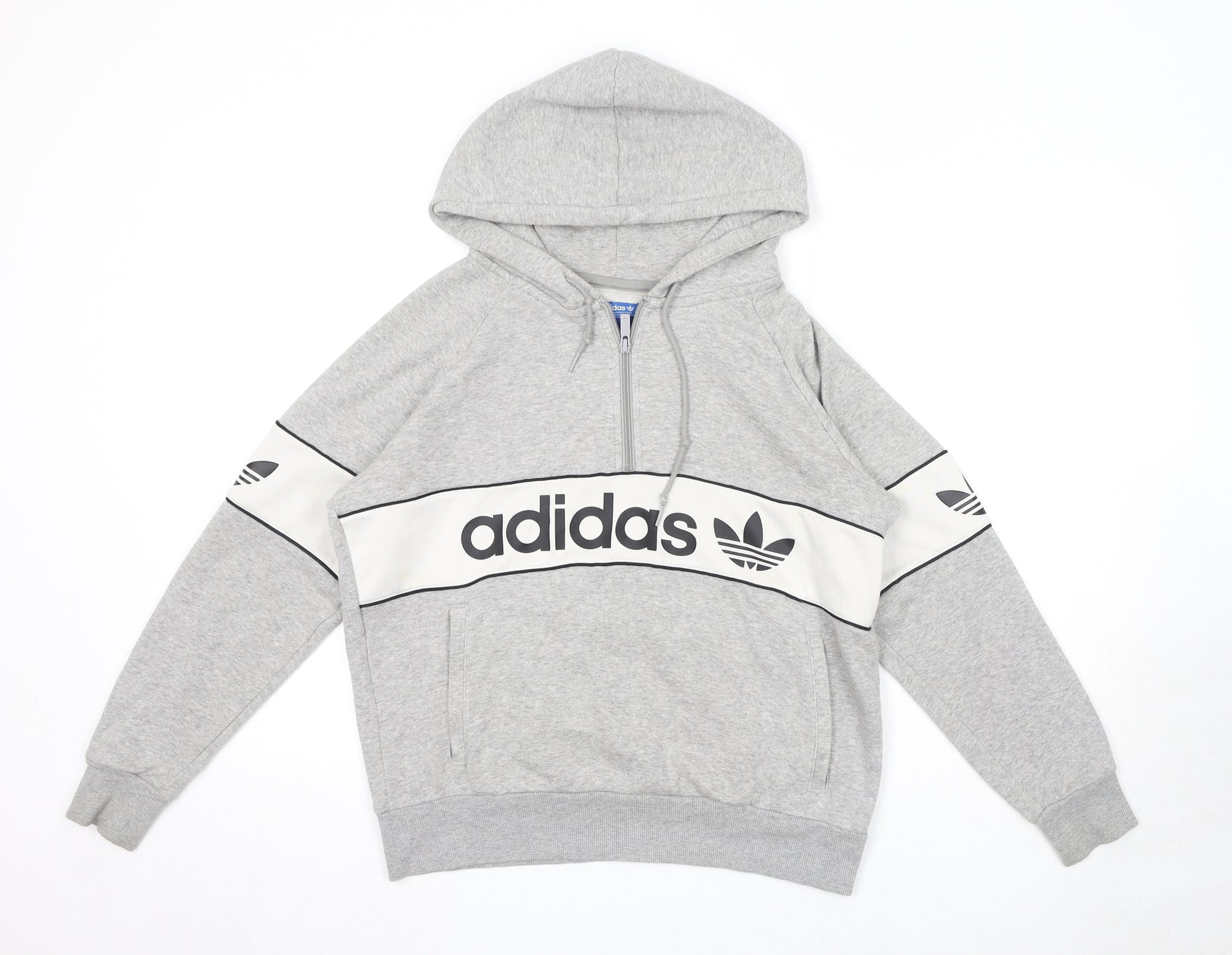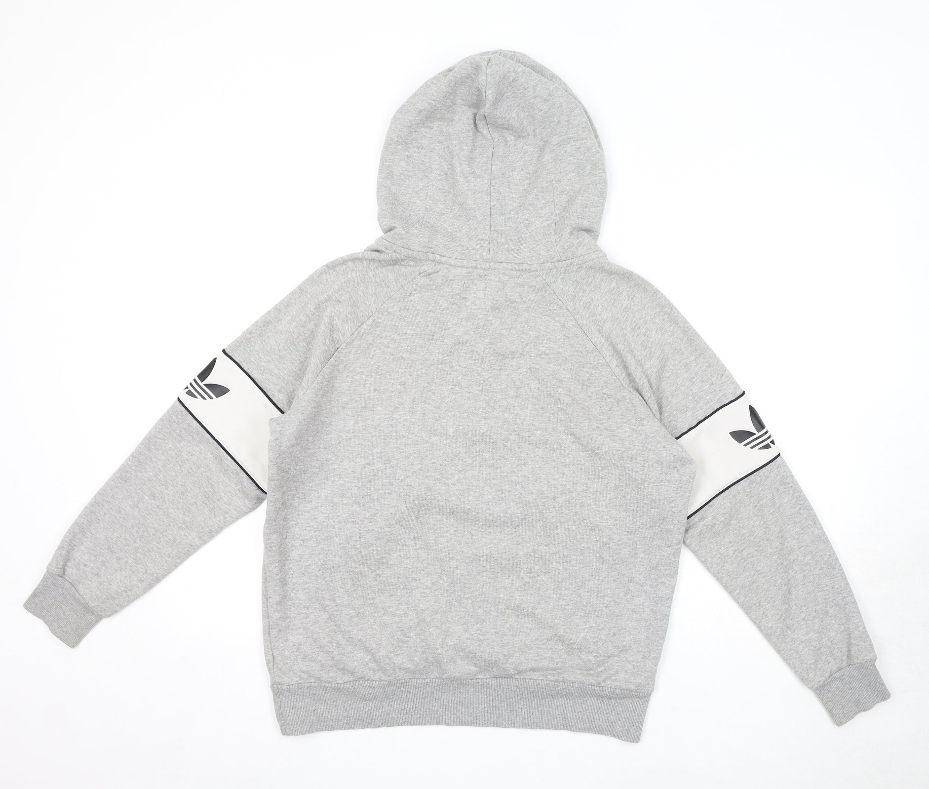 Adidas Womens Grey Pullover Hoodie Size 10 Relaxed Fit Trefoil Logo
