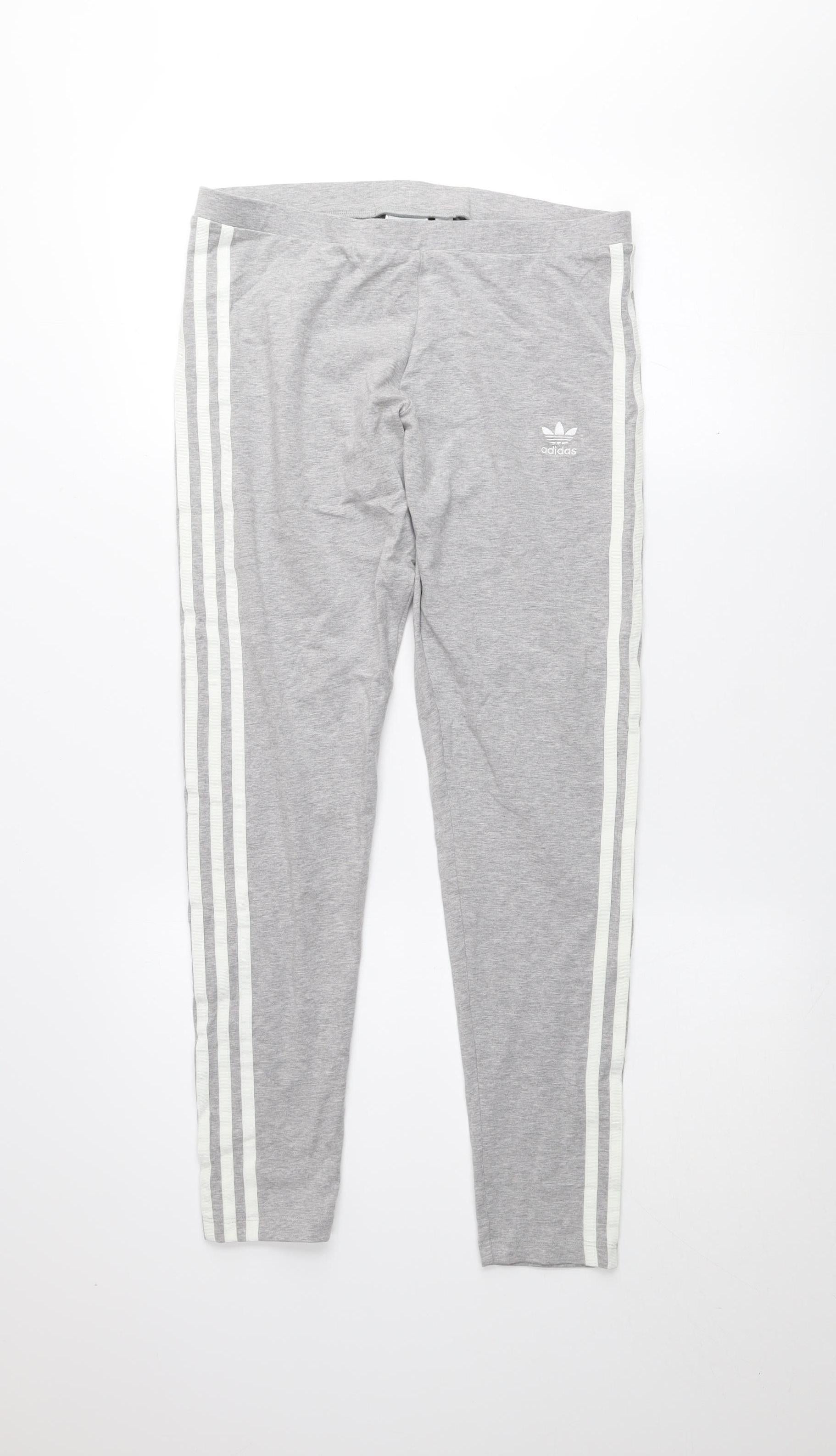 Adidas Women's Grey Cotton Stretch Side Stripe Leggings Size 16