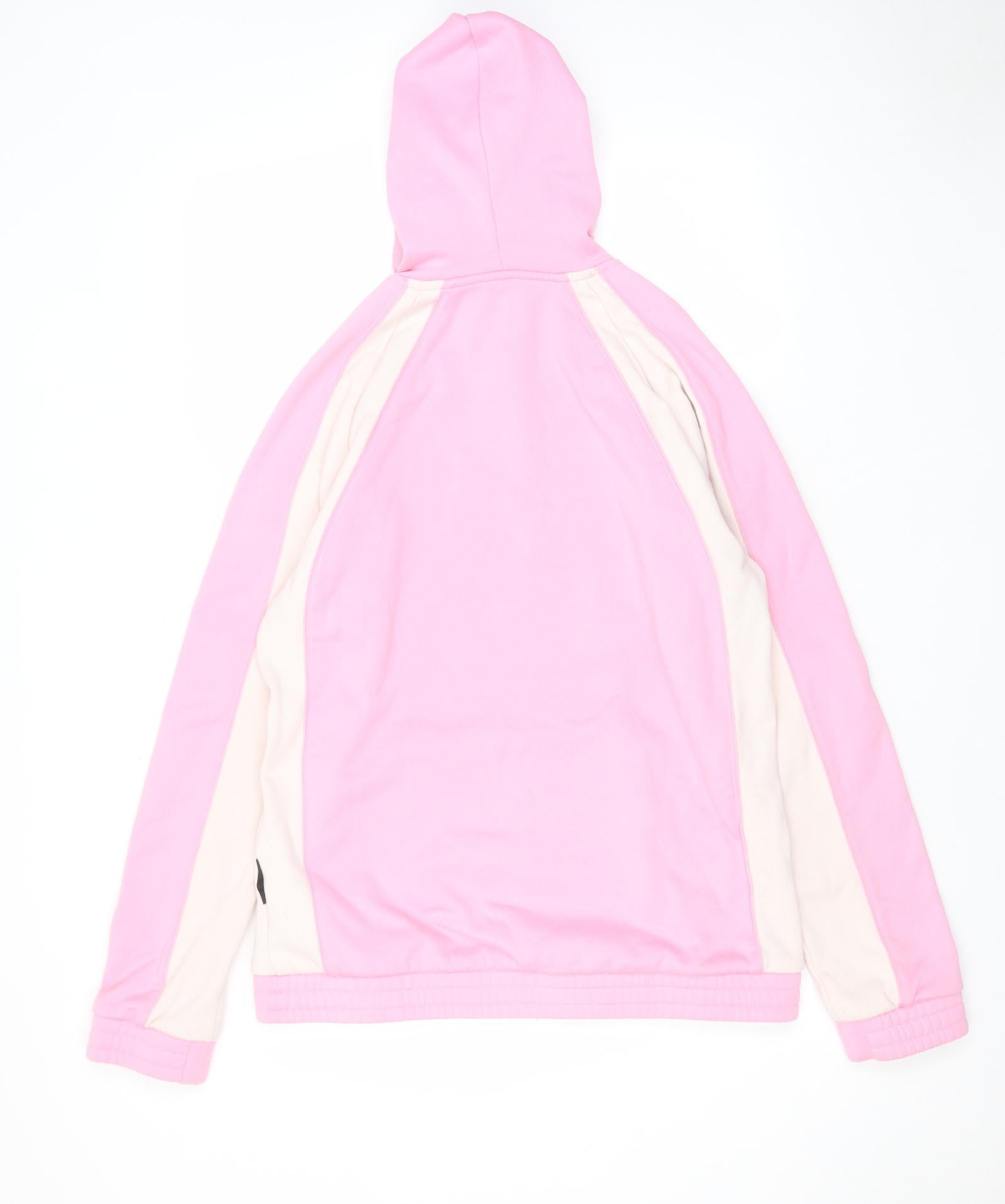 Womens Pink Colourblock Cotton Pullover Hoodie Size L Pullover - Pockets Logo