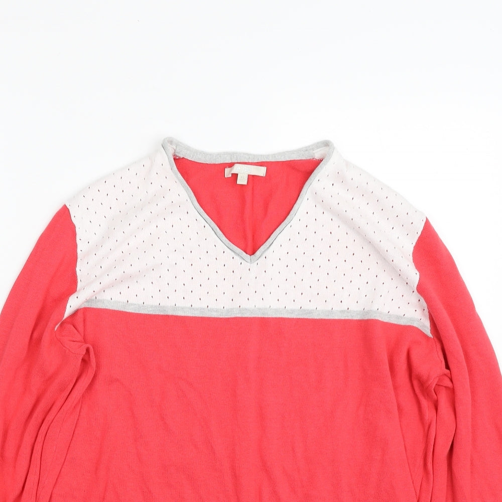 Womens Pink V-Neck 100% Cotton Pullover Jumper Size XL