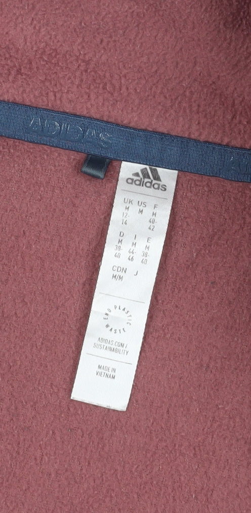 Stay warm and comfortable with this Adidas Women's Purple Fleece Jacket. Designed for the cool autumn and winter months, this jacket is tailored in a regular fit and features a short length, making it a versatile addition to your casual wardrobe. Crafted from soft fleece fabric, this piece ensures that you remain cosy without compromising on style. The jacket sports a full-zip closure, allowing for easy wear, and has convenient pockets for practical storage. Accented with the iconic Adidas logo, it blends functional design with a touch of sporty flair. Machine washable for easy care, it is perfect for everyday wear. Whether you're heading out for a casual stroll or need something snug for your daily activities, this jacket is a reliable choice. Despite some faint marks on the fabric, it remains in excellent condition, ready to be worn for your next outing.