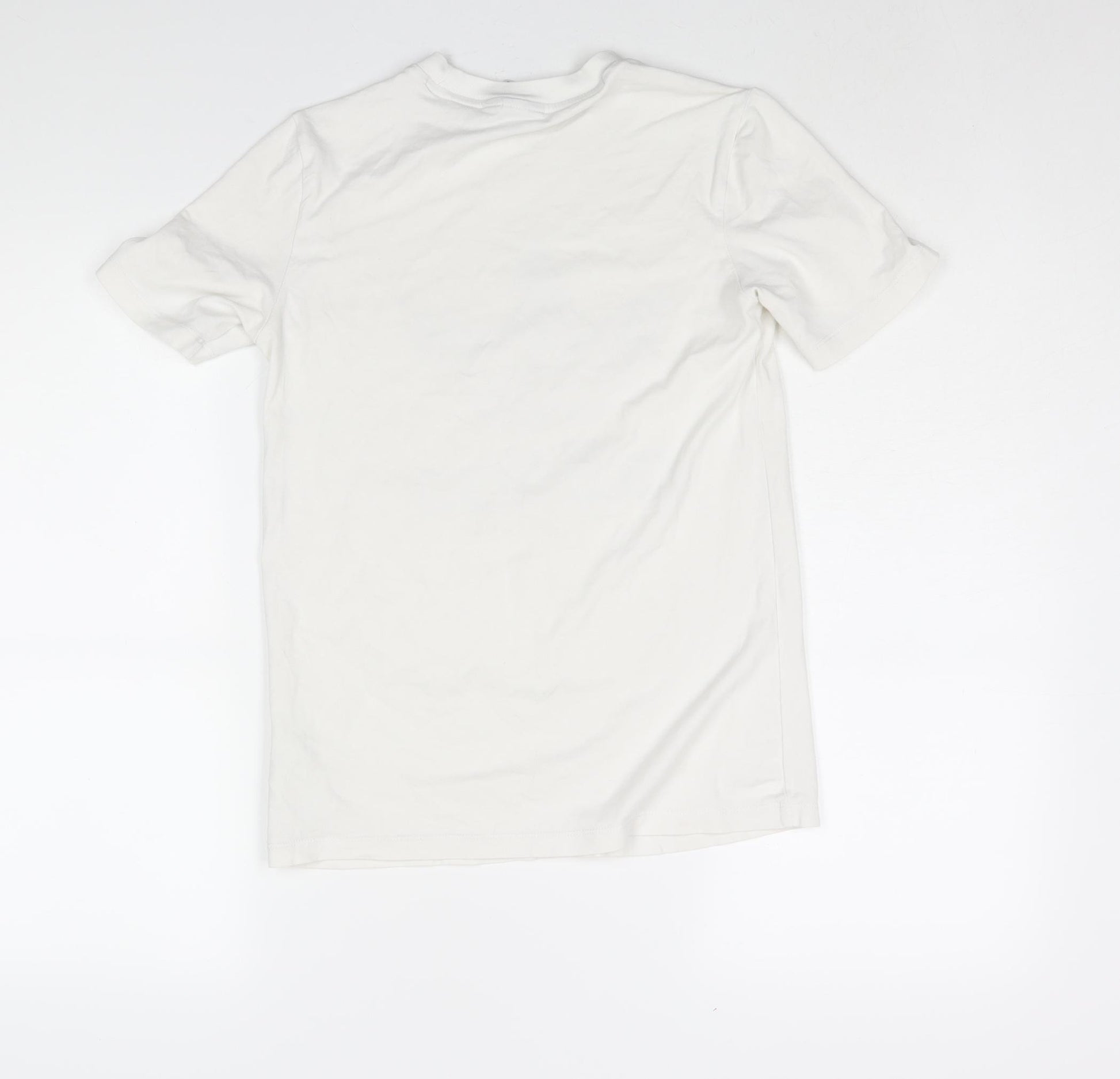 Womens White Cotton Basic T-Shirt Size 8 Crew Neck - Logo Print