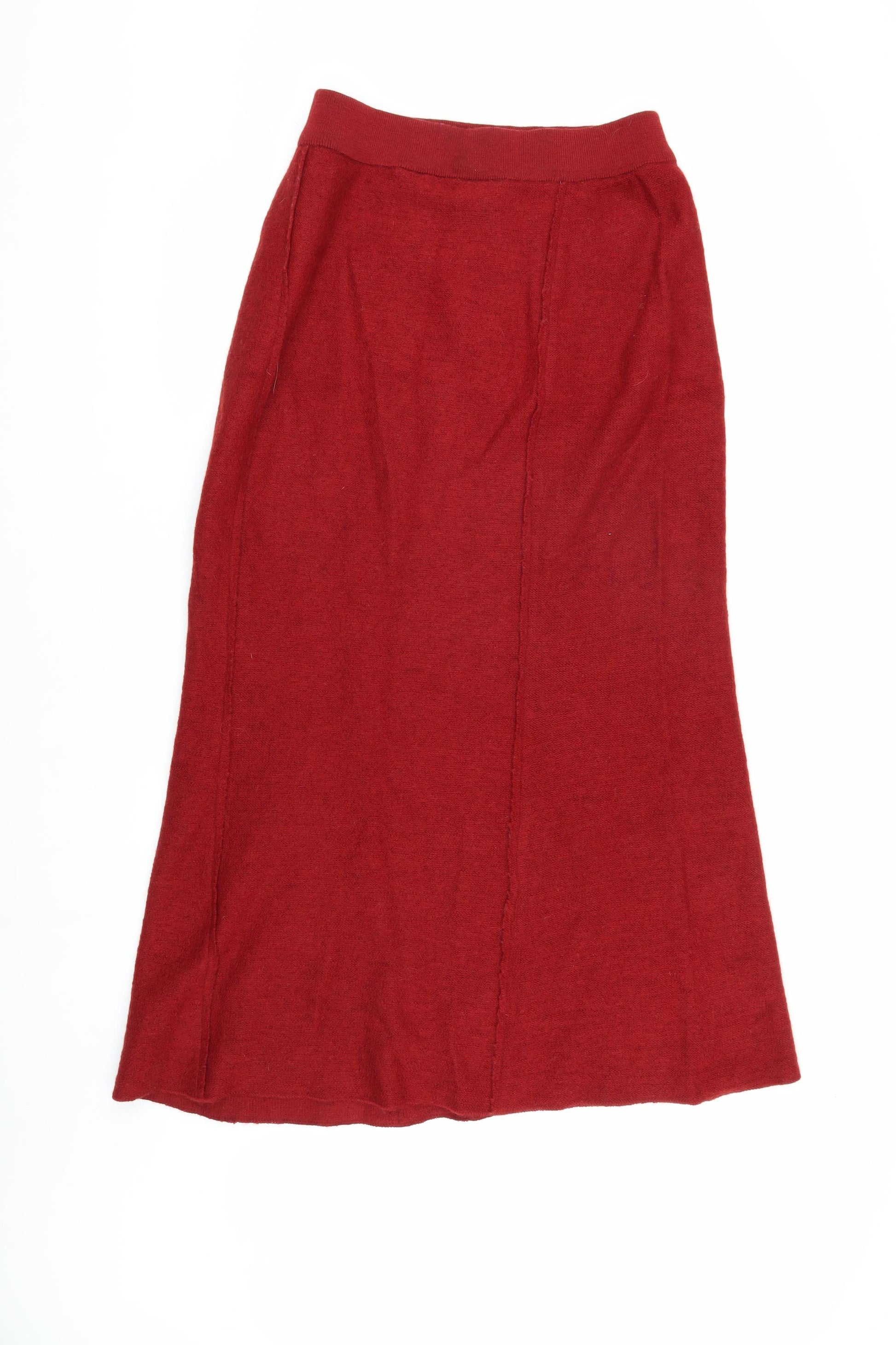 Elevate your wardrobe with this elegant red wool knit skirt from Adini, perfect for adding a touch of sophistication to any ensemble. Crafted from 100% wool, this skirt offers warmth and comfort, making it ideal for cooler months while maintaining a chic, polished look. The skirt is designed in a rich, vibrant red, ensuring you stand out with confidence. Its size large fit contributes to a relaxed and flattering silhouette that works seamlessly for various body shapes and styles. This timeless piece features a simple yet elegant design, free from intricate patterns, allowing versatile styling for both casual and more dressed-up occasions. Pair it with a crisp blouse for a refined business look or a cosy sweater for a more laid-back approach. Despite its used condition, the skirt remains in excellent shape, showing minimal signs of wear for its timeless design. With a hand wash recommendation, maintaining the fabric's lush quality is effortless. Ideal for women who appreciate classic style with modern comfort, this skirt is a versatile addition to any wardrobe, suitable for layering and mix-and-match fashion. Don't miss the opportunity to refresh your wardrobe with this stylish and practical Adini wool skirt.