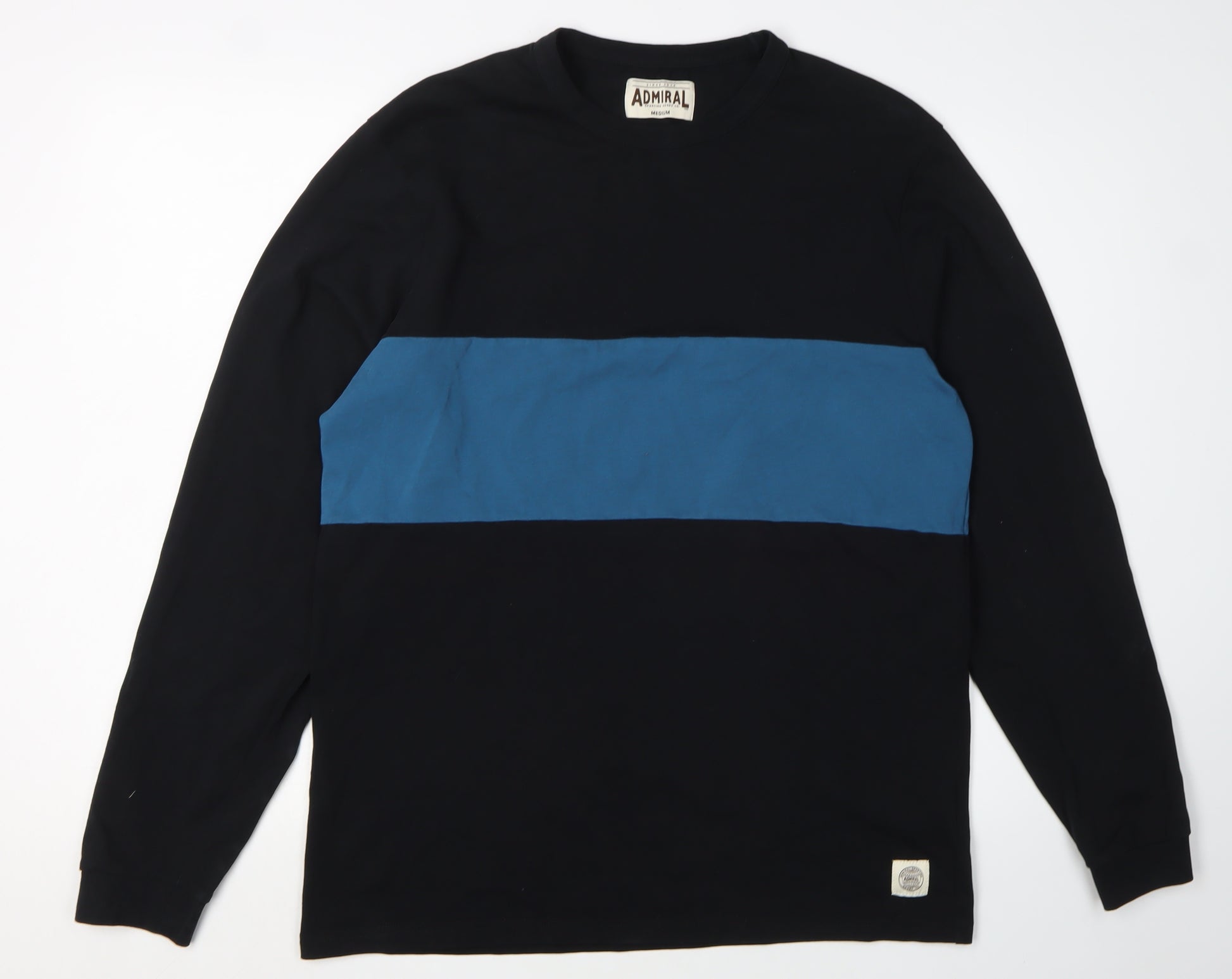 Introducing the Admiral Men's Black Medium Colourblock Long Sleeve T-Shirt, a stylish and versatile addition to your wardrobe. Crafted from 100% cotton, this t-shirt ensures comfort and breathability, making it perfect for all seasons. The classic crew neckline and long sleeves provide a timeless look, while the striking colourblock design adds a contemporary twist. Ideal for casual outings or laid-back weekends, this t-shirt effortlessly combines fashion and function. With its machine-washable fabric, easy maintenance is guaranteed. Whether you style it with jeans for a relaxed look or layer it under a jacket for added warmth, this t-shirt is a must-have staple. Don't miss the chance to own a piece from Admiral, known for its quality and heritage. Elevate your everyday style with this essential t-shirt.