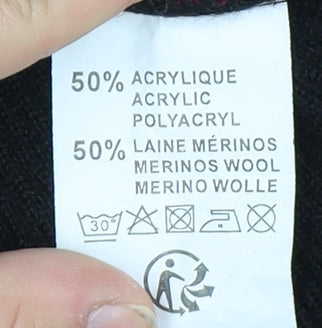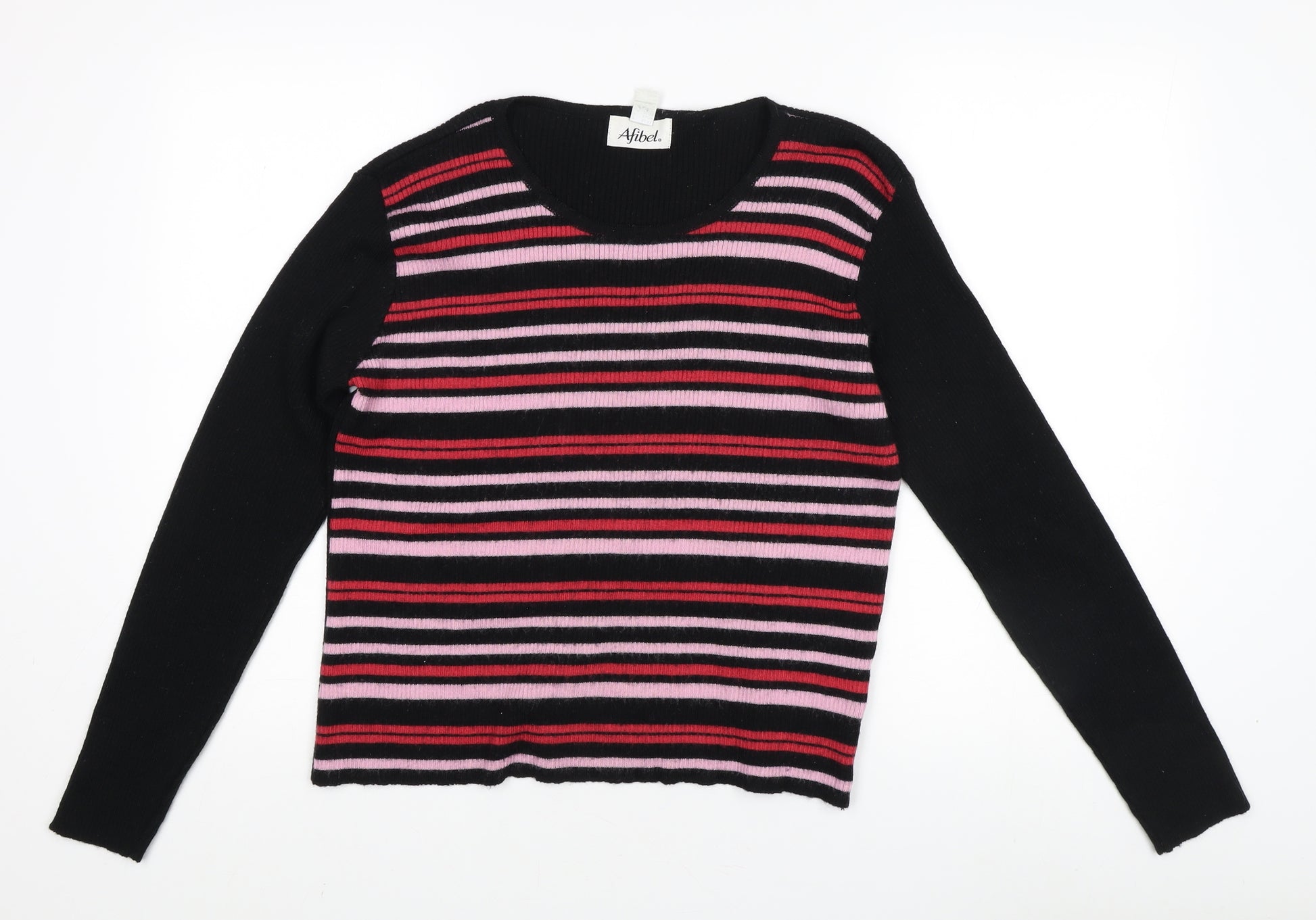 Embrace cosy charm with this Afibel Women's Plus Size Striped Pullover Jumper, a delightful addition to your wardrobe that seamlessly blends style and comfort. Crafted from a luxurious blend of 50% Acrylic and 50% Merino Wool, this jumper promises not only warmth but also a soft touch against your skin. The striking black base is enhanced with vibrant multicoloured stripes, making it a standout piece that is perfect for the colder months. The round neckline and long sleeves ensure effortless wearability, while the tight-knit fabric provides a flattering fit that suits every occasion. Whether you're pairing it with jeans for a casual day out or dressing it up with a skirt for a chic ensemble, this jumper will quickly become a favourite. Easy to care for and machine washable, it's designed for the modern woman who values both style and practicality. Available in sizes 20 to 22, it offers a regular fit that flatters plus-size figures without compromising on comfort. This gently used piece is in excellent condition, ready to grace your collection with its vibrant colours and cosy warmth. Ideal for everyday wear during the autumn and winter seasons, this jumper is a versatile staple you won't want to miss.