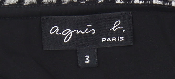 Elevate your wardrobe with this classic Agnès b. midi skirt. Designed for the sophisticated and chic woman, this skirt features a timeless houndstooth pattern in sleek black and white, offering a versatile and stylish addition to your ensemble. The straight & pencil style creates a flattering silhouette, making it perfect for both business and casual settings. Expertly crafted from a quality blend of wool and acrylic, this skirt ensures both warmth and elegance, ideal for autumn and winter seasons. With its regular fit and mid-rise design, comfort and style go hand in hand. Despite being gently worn, it remains in excellent condition with no visible flaws. Perfect for the fashion-forward individual, this Agnès b. skirt will effortlessly become a staple in your clothing collection.