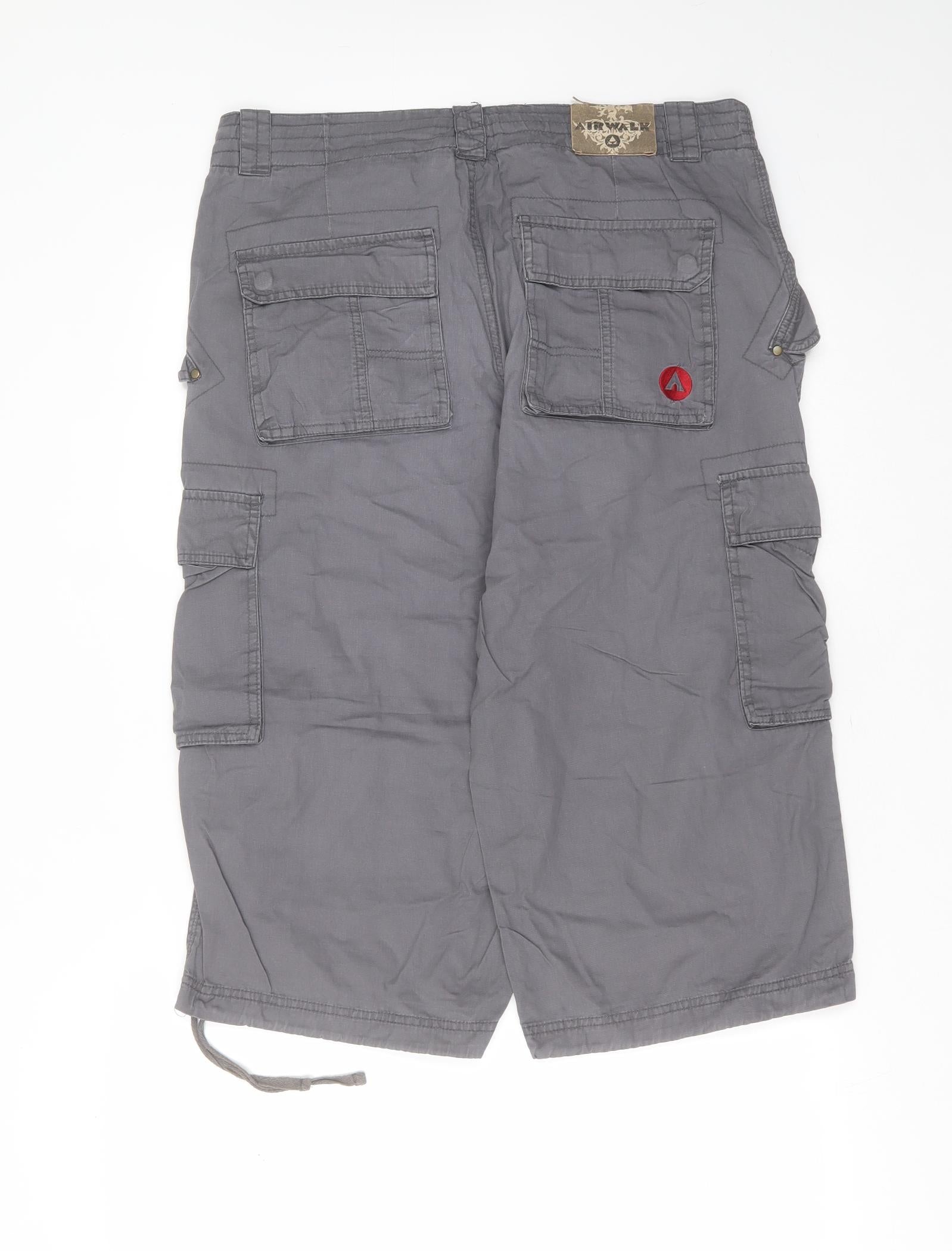 Mens Grey Cotton Cargo Trousers Size M L20 in Regular Zip - cropped