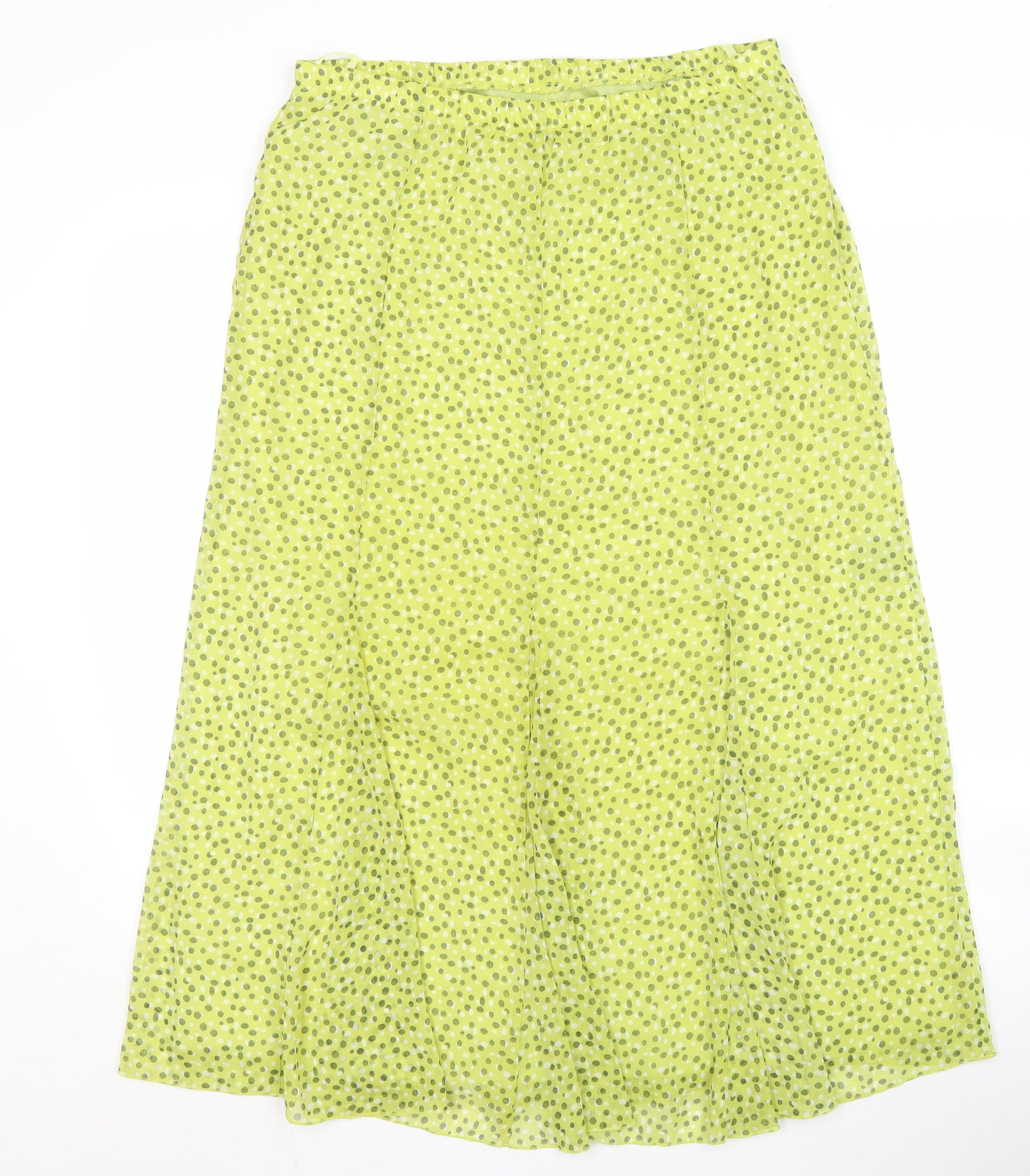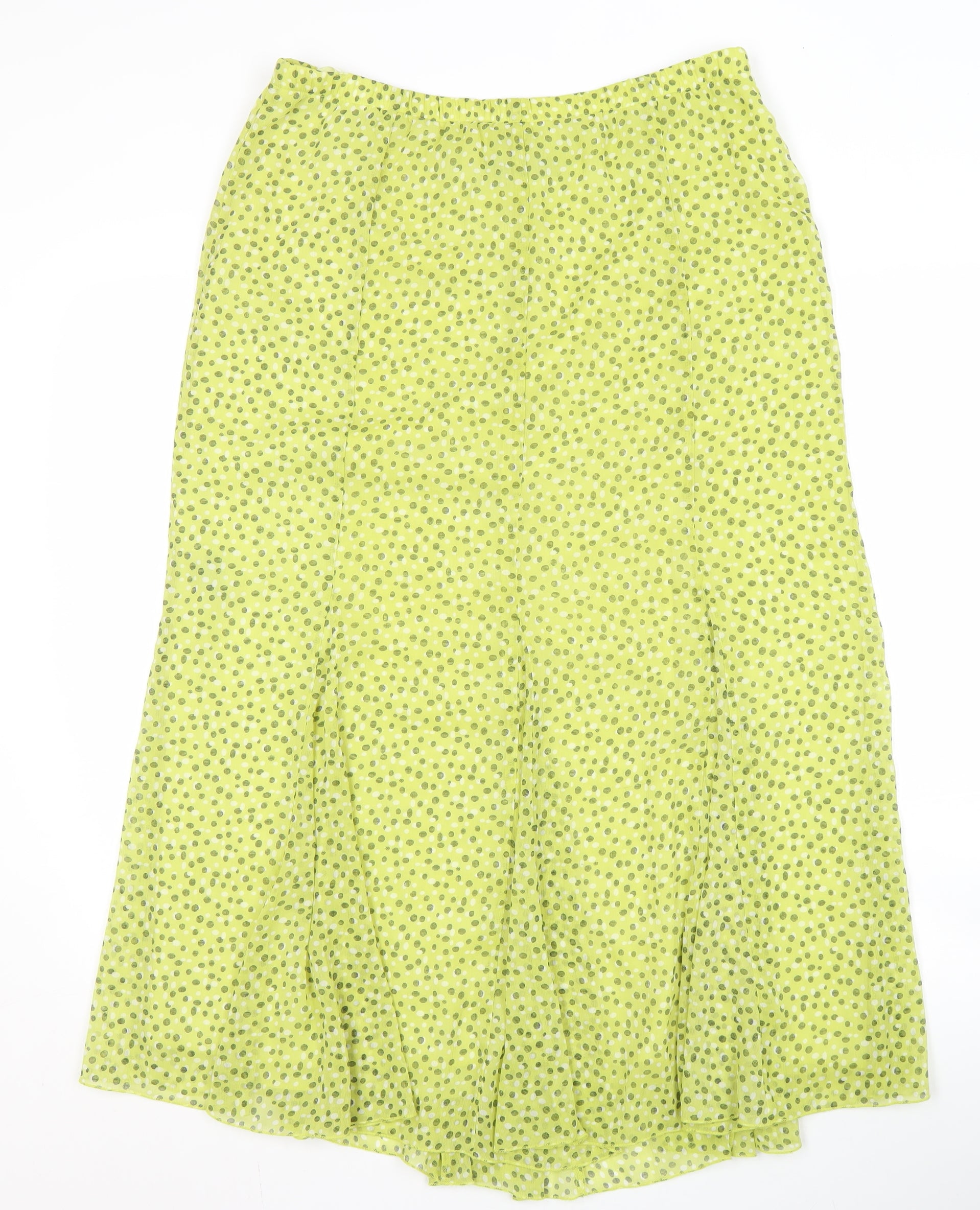 Add a pop of colour to your wardrobe with this vibrant Alexara women's skirt. Featuring an eye-catching green hue adorned with playful polka dots, this long skirt offers both style and comfort. Crafted from 100% polyester, it provides a lightweight and breathable experience perfect for any casual outing. The skirt's graceful length and flowy design make it a versatile piece, ideal for pairing with a simple blouse or a denim jacket. Despite being in excellent condition, the skirt shows slight signs of wear but remains a beautiful addition to your fashion collection. Whether you're headed for a day out with friends or a relaxing stroll, this Alexara skirt is sure to make a statement. Don't miss the chance to own this charming and stylish skirt at an affordable price.