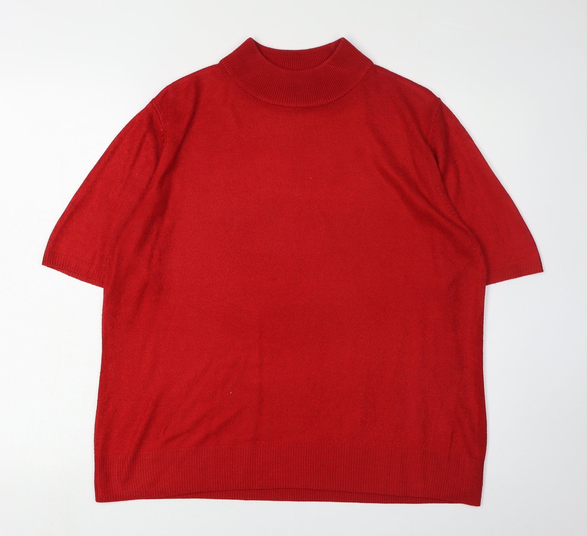 Elevate your wardrobe with this striking red pullover jumper by Alexara. Crafted for comfort and style, this piece features a classic mock neck and is designed with short sleeves, making it perfect for layering during the cooler months of autumn and winter. The rich red hue adds a splash of colour to any outfit, while the acrylic knit fabric ensures a soft and cozy fit. Ideal for casual outings, this jumper pairs perfectly with jeans or skirts. In excellent condition with no visible defects, this versatile piece is a must-have addition to your collection.