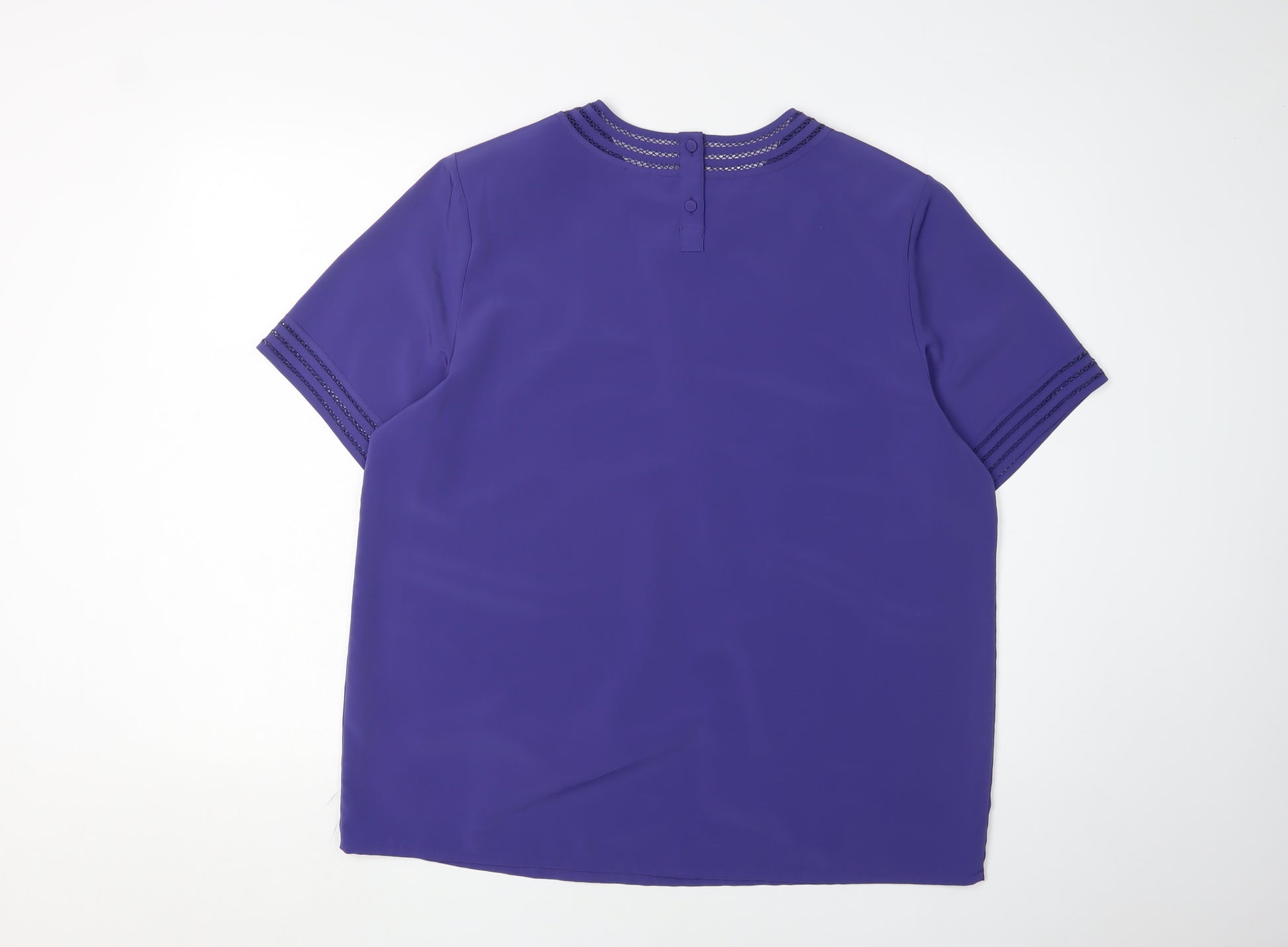 Elevate your wardrobe with this elegant Alexon Women's Purple Blouse, perfect for casual occasions. Designed with a classic round neck and short sleeves, this blouse offers a timeless style that easily complements various outfits. Made from 100% polyester, it is lightweight and comfortable, ensuring you feel as good as you look. The solid purple colour adds a pop of vibrancy to your ensemble, making it an excellent choice for spring and summer. This blouse features a simple button closure at the back, adding a subtle accent to its design. It's crafted for a regular fit, flattering and feminine, making it a versatile addition to your collection. With its machine-washable fabric, this blouse offers easy care for everyday practicality. Perfect for adding an effortless yet chic vibe to your everyday look, this piece is a staple for any fashionable woman's wardrobe. In excellent condition, it shows no signs of wear or damage, ideal for those who appreciate quality and style.