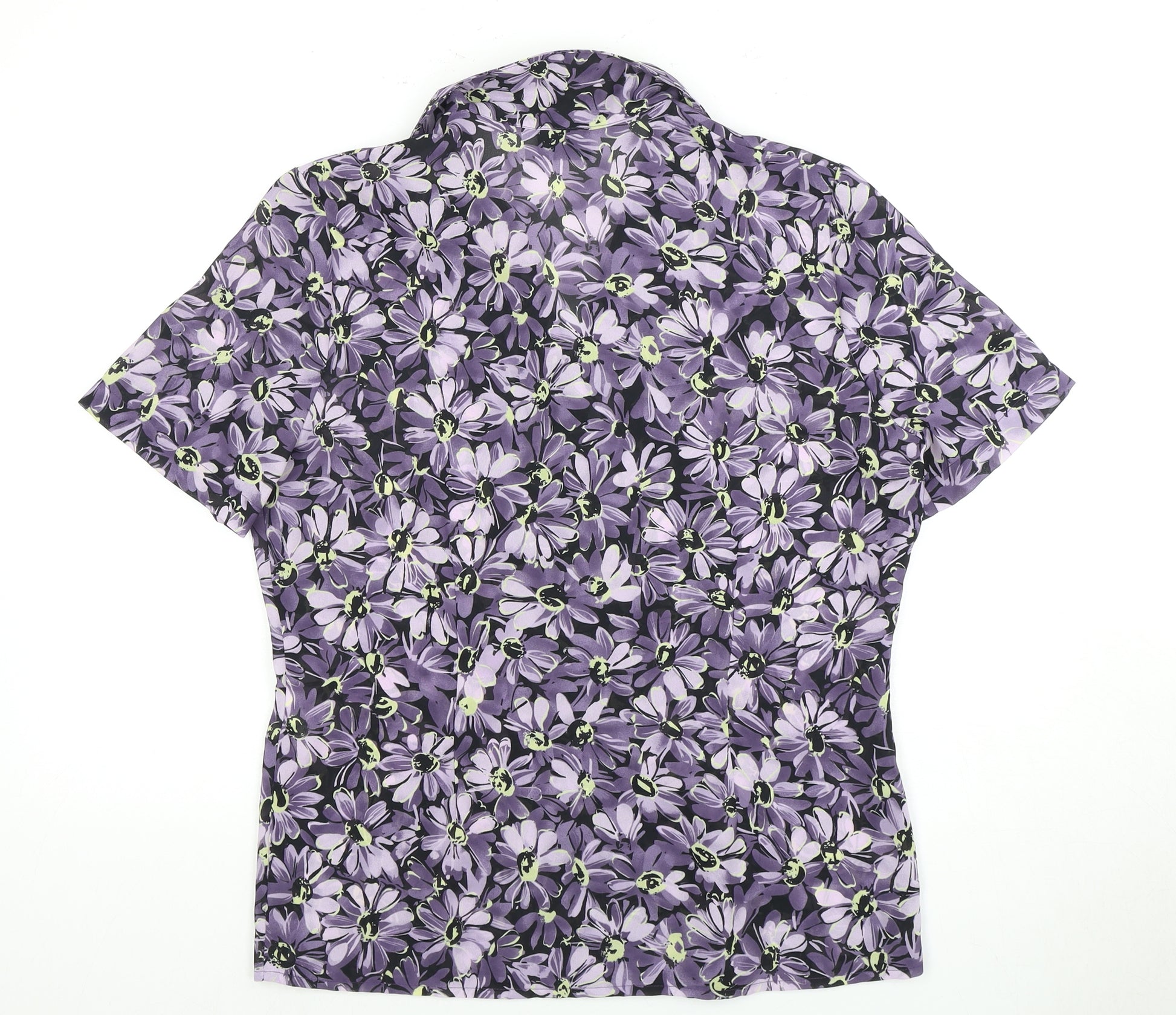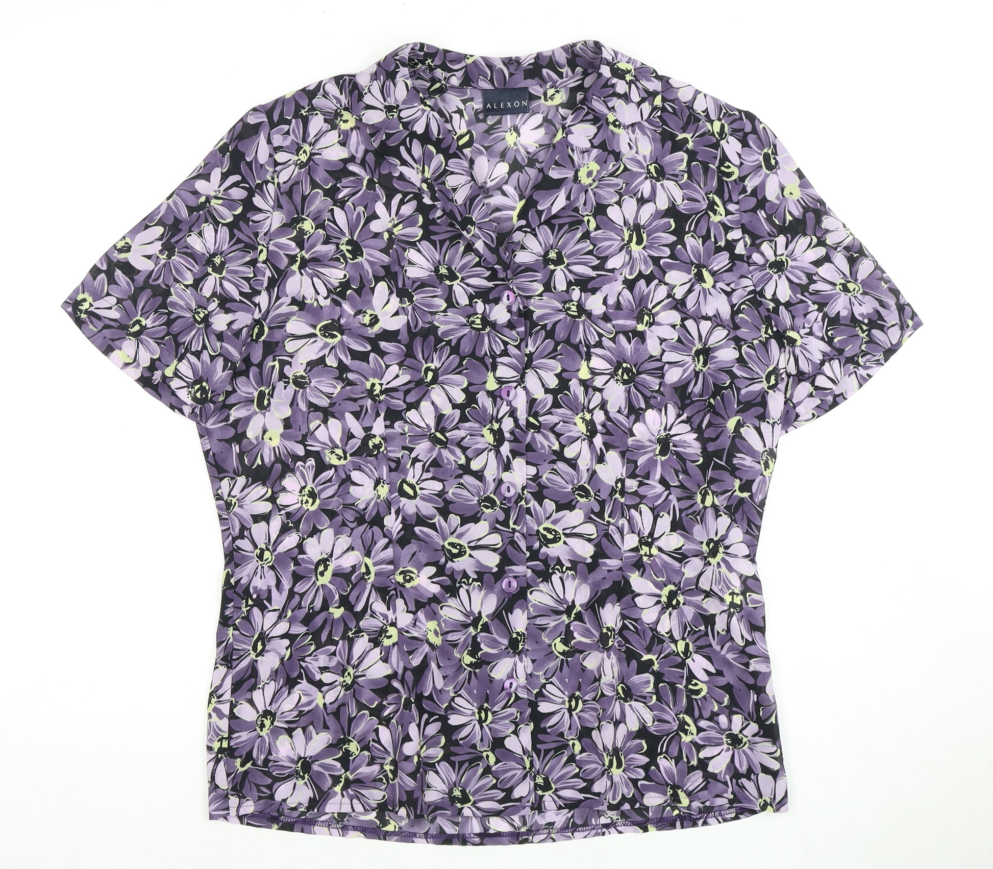 Add a touch of elegance to your wardrobe with this Alexon women's blouse, perfect for any casual outing. Crafted from high-quality 100% polyester, this lightweight floral blouse promises comfort and style. The soft purple hue, adorned with a vibrant floral pattern, adds a chic and feminine touch, making it ideal for spring and summer wear. The blouse features a classic button-up design with a collared neckline, offering a timeless look that pairs effortlessly with trousers, skirts, or jeans. The short sleeves are designed to provide a relaxed fit, ensuring breathability on warmer days. Its regular fit contributes to a flattering silhouette for any body type. Easy to care for, this machine washable blouse will be a reliable addition to your wardrobe. Whether you're heading to a casual brunch, a family gathering, or traveling to your next destination, this Alexon blouse is versatile enough for various occasions. Despite being pre-owned, its excellent condition ensures it remains a stylish staple in your collection, offering both durability and charm.